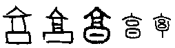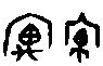 , 穀所振入也。 宗廟粢盛, 蒼黃㐭而取之, 故謂之㐭。 从入从回。 象屋形, 中有戶牖。 凡㐭之屬皆从㐭。
