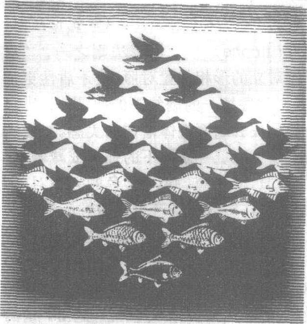 构图方法之一。指表现形相大小相等时,采用均等分割画面的方法。亦称均等分割或无级差分割。例如埃舍尔《水与天》一画,鸟与鱼必须遵循大小严格的规定性,才能出现“图地反转”的视觉效果,作画时要经过等分分割法,之后再以其它分割和造形。
