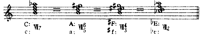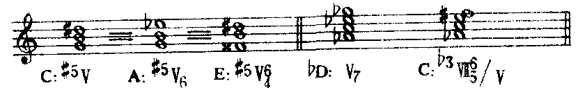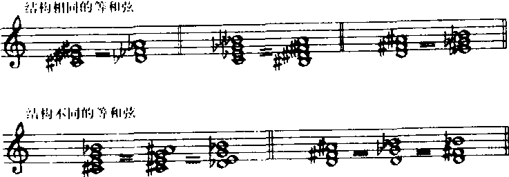 释义 | 等和弦 等和弦在十二平均律中,利用等音变换方式记谱,从而使实际音响相同,但内部结构不同,因而其所属的调性和作用也不相同的和弦,称为等和弦。在等和弦中,等音的变换可以是一个音,也可以是几个音。在音乐创作中,主要利用等音变换后音的倾向关系的改变实现转调。各种自然和弦、半音和弦与变音和弦均可作等和弦变换。其中,常见的有如下几种: ☚ 变音和弦 和弦外音 ☛ 等和弦 等和弦Deng hexian孤立地听时音响相同,但在乐曲中意义不同,音名及写法也不同的两个和弦。等和弦有两类。结构相同的等和弦是由等音调而形成的。 ☚ 转位和弦 根音 ☛ |