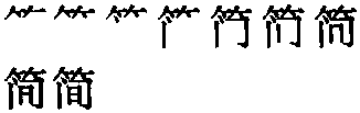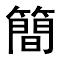 简 简jiǎn大貌。《邶风·简兮》一章: “简兮简兮,方将万舞。”毛《传》:“简,大也。方,四方也。将,行也。以干羽为万舞,用之宗庙山川,故言于四方。”一说:选择。郑《笺》: “简,择。将,且也。择兮择兮者,为且祭祀,当万舞也。万舞,干羽也。”又一说:简易不恭。朱熹《集传》: “简,简易不恭之意。万者,舞之总名,武用干戚,文用羽籥也。” ☚ 筮 简简 ☛ 简读音j·ian(ˇ),为ian韵目,属an—ian—uan—üan韵部。古限切,上,产韵。 ❶简单;简易;简化。如:删繁就简。 ❷古时用来写字的竹板。 ❸荒废;怠慢。 ❹竹简;书简。 上一条: 襇 下一条: 簡 简jiǎn怠惰;放荡。例:硬 (cuā)~到后头,蔫~~地不想干活! ❍ 他是个浪子,不干~活,整天胡浪~! 《字汇》:“简,慢也。”高诱注:“简,惰也。” 简〔jian〕 简单 〔jian dan〕 jant dand. 简簡{}五6602①名女婢。闽语。福建永春。黄碧珍《永春童谣・露里乳》:「虹箔挽,放屎糊~。」②动木板变曲,变不平。吴语。浙江金华岩下〖 〗。③量捆。胶辽官话。山东长岛〖 〗。一~胡稭‖一~苞米稭。山东牟平〖 〗。一~棒棒稭子。   简jian❶竹简。《韩非子·外储说左上》:“昭王读法十余~而睡卧矣。”(法:法律。)《汉书·艺文志》:“迄(qi)孝武世,书缺~脱,礼坏乐崩。”(迄:到。崩:坏。) ❷选择,选拔。诸葛亮《出师表》:“是以先帝~拔以遗陛下。”(遗:留给。)魏徵《谏太宗十思疏》:“~能而任之,择善而从之。”(能:有才能的人。任:任用。择:与前面的“简”为同义对文。善:也指有才能的人。从之:听从他。) 简簡jiǎn❶古代写字用的竹片 △ 竹~。 ❷书信 △ 书~。 ❸简单❶(跟“繁”相对) △ ~体字|~历。 ❹使繁变简 △ 精~|精兵~政。 ❺慢待;轻视 △ ~慢。 ❻姓。 简❶简单:~便丨~短丨~明丨~朴丨~古丨~易丨~要丨~洁丨~捷丨~括丨~练丨~略丨~陋丨~报丨~本丨~编丨~称丨~历丨~写丨~约丨~则丨~章丨~装丨~介丨从~丨苟(gou)~丨~明扼要丨言~意赅(gai)丨深居~出丨删繁就~丨因陋就~。 ❷使简单;简化:~缩丨精~丨精兵~政丨轻装~从。 ❸轻忽:~慢。 ❹选择:~拔丨~任。 ❺古代用来写字的竹片或木片:~册丨~札丨竹~丨木~丨汉~丨断编残~。 ❻信件:小~丨书~。 简jiǎn❶ 古人用来写字的竹片或木片:简牍│残编断简。 ❷ 信件:书简。 ❸ 简单,简略:简报│简便│言简意赅。 【提示】与“繁”相对。 ❹ 使简单:精兵简政│简化汉字│轻车简从。 ❺ 选择人才:简拔贤才。 ❻ 姓。 简jian简拔 简报 简本 简编 简便 简称 简单 简短 简古简化 简洁 简捷1 简截 简介 简况 简括 简历 简练 简陋简略 简慢 简明 简朴 简谱 简省 简缩 简体 简写 简讯 简要 简易 简约 简则 简章 简直 简装 尺简 从简 苟简 过简精简 木简 书简 竹简 简单化 简化字 简体字 简装本 简单劳动 简体汉字 简明扼要 言简意赅(gai) 言简意明 精兵简政 轻装简从 深居简出 文字简约 断篇残简 删繁就简 因陋就简 简(同)帛 牍 陋 (反)繁 简jiǎn