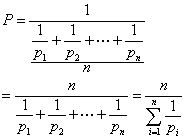 对某商品的诸种成交价格利用数学上的调和 (倒数) 平均法计算出的平均价格。设有n种成交价格p1,p2,…,pn,P为平均价格。其公式如下: