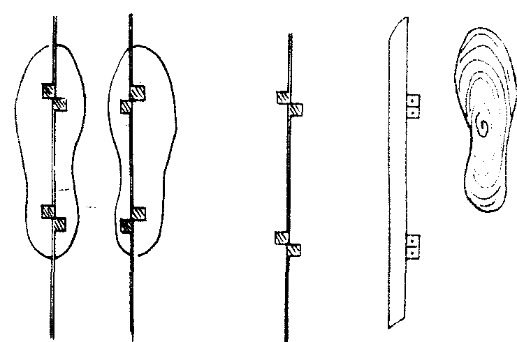 指无法解决正式冰刀时自己制做简易冰刀。找一块直径10厘米左右、质地坚硬、长度与鞋底相同的圆木,从中间锯成两个半圆形,将半圆的中央顺锯一道缝,缝的深度和宽度, 以冰刀片镶入合适为标准。再将厚1. 5毫米、宽约4—5厘米,稍长于木板的铁或钢片镶入半圆木缝内作为刀刃,要求越结实越好,并将铁或钢片磨出内外刃来,再自半圆木的两侧穿上较宽的带子,滑时绑在鞋上即可。