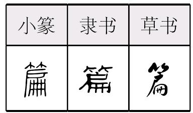 【提示】扁,起笔是侧点,旧字形是撇; 中间的横,宋体与左右两边相接,楷体与左右两边相离。 *篇piān15画 竹部 (1) 首尾完整的诗文;成部著作中的一个组成部分: ~章|~幅|《劝学~》|《孟子》七~。 (2) (~儿)写着或印着文字的单张纸: 歌~儿。 (3) 量词: 1. 用于文章: 一~论文。 2. 用于纸张、书页(一篇为两页): 三~儿纸|一下翻了两~儿。 篇 ☚ 篆 籍 ☛ 篇piān古代形声字。从竹,隶书竹头与草头不少混淆的。它从小篆来,竹头作 ,但斜画较平,就成 ,再平成 ,就是草头。甚至有写艹或艸(小篆的草头)的。这个字必需区别,草头的萹读biān,用于萹竹。从扁声。音变如扁偏翩骗例。篇本是古代的书,古代把竹管劈成几片,在上面写字,叫作简册,所以简篇都是竹字头,册是穿起来的竹简或上面写字的玉石等。中古以后引申指首尾完整的文章,就是一部书可以分开的大段落。如:《孙子》十三篇。转为量词,指文章。如:一篇论文。又指纸张、书页,一篇是两页。组词如:篇幅。 篇★常◎常