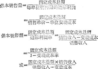 管理会计中广泛应用而有效的成本——数量——利润分析(CVP)方法的一种特殊形式。所谓保本点,即当利润额等于零(不赚不赔)时的销售量或销售额。它的要点是,将总成本按成本性态划分为固定成本和变动成本两部分(混合成本须进一步划分清楚);销售收入减去变动成本的余额称为边际利润或贡献毛益(Contribution Margin);用边际利润与固定成本的比值计算出销售量或销售额的保本点。计算公式是: