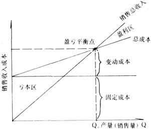 释义 | 保本分析法 根据产量、成本、利润三者之间的相互依存关系,进行综合分析的方法。 它在预测利润、控制成本和产量进行经营决策等管理活动中有重要作用。 保本分析法,可用一个公式和一张图来表示。 这个公式是:利润=销售收入-(固定成本+变动成本)。 图是:用产品销售量与销售收入的关系画出一条“总收入线”;再用产品产量与总成本的关系画出一条“总成本线”;这两条线的交点就是成本与销售收入二者相等的焦点,即盈亏平衡点。按盈亏平衡点所对应的产品销售量组织生产,则企业不亏不盈;高于这个销售量时,总收入线高于总成本线,即为盈利区,企业可以盈利;反之,低于这个销售量时,总收入线将低于总成本线,即为亏损区。如图: 如图所示,在产量(销售量)Q达到Q0时,既不赚钱,也不亏本,盈亏平衡;当Q大于Q0时,企业就能盈利赚钱;当Q小于Q0时,企业就将亏本赔钱。 进行保本分析和确定盈亏平衡点的前提条件是:进行分析的企业在一定时期内,工厂规模和生产方法都保持不变,而销售量和产量一致,销售单价也保持不变,还须将成本划分为固定成本和变动成本,才能进行分析。 |