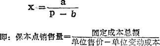 释义 | 保本点 亦称“够本点”、“盈亏分界点”、“盈亏临界点”、“损益两平点”。 指销售收入总额与成本总额相等时,企业处于不盈不亏状态下的销售数量和销售金额。其测定方法通常有以下三种: (一)方程式法 设:p为销售单价,x为销售量,b为单位变动成本,a为固定成本总额,则: px=bx+a ∵测定保本点的销售量,利润应为0。 ∴px-bx-a=0 保本点销售额=销售单价×保本销售量 (二)贡献毛益法(边际贡献法) ∵销售收入=变动成本+固定成本+利润销售收入-变动成本=固定成本+利润贡献毛益=固定成本+利润 测定保本点销售量,利润应为0,这样: 贡献毛益=固定成本单位贡献毛益×销售量=固定成本 (三)图示法,在坐标图上,以横轴表示销售量,以纵轴表示成本和销售收入的金额,首先找一个任意销售量与其销售收入相对应的点,并从原点过此点画一条直线,为销售收入线。其次,在纵轴上找出固定成本的截距,并从此处画一条平行于横轴的直线,为固定成本线。 最后再找一个任意销售量与其总成本相对应的点,并从固定成本在纵轴上的交点开始画一条过此点的直线,为总成本线。销售收入线与总成本线的交点,即为保本点。见“成本一数量-利润分析”辞条。 |