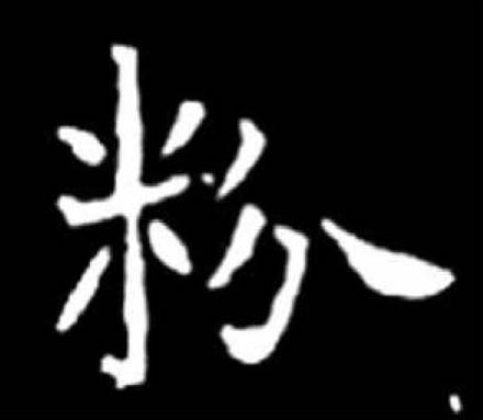 【提示】米,中间是竖,不是竖钩; 位于字左时末笔的捺改点。右上的八,2画;旧字形捺前端有一小折。 *粉fěn10画 米部 (1) 化妆用的粉末: 脂~|香~|~墨登场|涂脂抹~。 (2) 细末: ~末|面~|胡椒~|洗衣~。 (3) 淀粉;用淀粉制成的食品: ~肠|~皮|凉~。 (4) 特指粉条或粉丝: 炒~|压~|漏~。 (5) 使变成粉末: ~碎|~身碎骨。 (6) 带着白粉的;白色的: ~蝶|~牌|~连纸。 (7) 粉红色: ~色|~连衣裙。 粉 ☚ 氣 竊 ☛ 粉fěn古代形声字。从米,分声。本专指化装扑脸用的粉末。引申为细末儿。如:藕粉|漂白粉。引申转为动词,使破碎,成为粉末。如:粉身碎骨。又指粉刷墙壁。组词如:粉饰。又引申为白色的或带粉末的。如:粉墙|粉蝶。又指粉红色。如:这花是粉的。再引申指用豆粉或别的粉做成的食品。如:米粉|粉条|凉粉。 粉★常◎常