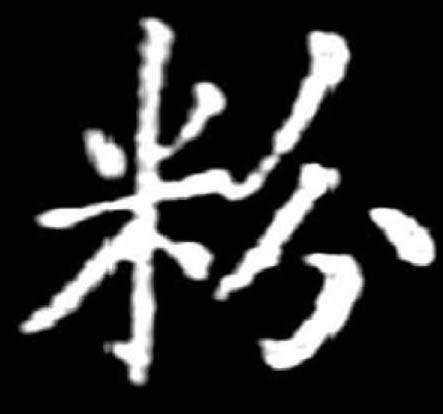 粉❶细末:~末︱~尘︱药~︱豆~︱米~︱面~︱藕~︱奶~︱鱼~︱骨~︱花~︱牙~︱齑(ji)~。 ❷特指化妆用的粉末:~黛︱香~︱脂~︱抹~︱搽~︱脂~气︱~墨登场︱油头~面︱涂脂抹~。 ❸使完全破碎:~碎︱~身碎骨。 ❹(方)涂饰:~刷︱~饰。 ❺白色的;带白粉的:~牌︱~墙︱~蝶。 ❻淡色的:~红丨~绿。 ❼用淀粉等制成的食品:~皮︱~条︱~肠︱凉~︱干~。 ❽指花粉:传~︱授~。 粉fěn❶ 细末:面粉│粉末│洗衣粉。 ❷ 化妆用的粉末:搽粉│涂脂抹粉。 ❸ 粉条:细粉。 ❹ 粉刷:墙已经粉过。 ❺ 使变成粉末:粉碎│粉身碎骨。 ❻ 白色的或带有白色的:粉蝶。 ❼ 浅红色:粉红│粉色。 ❽ 姓。 粉粉fěn❶变成粉状。如:夏天天儿潮,这堆白灰用不了几天就都得~了。 ❷空隙加大,变得松软不坚硬。如:要做汤圆得先把江米泡~了再磨。 ❸粉刷。如:这座楼屋墙都~过了,过几天就能往里搬了。 ❹色情的、淫秽的(文艺作品)。如:不演~戏。/那小说才~呢。 粉fen粉笔 粉肠 粉尘 粉刺 粉黛1 粉蝶 粉坊 粉红 粉剂粉领 粉瘤 粉末 粉牌 粉皮 粉扑儿 粉墙 粉沙 粉饰 粉刷粉丝 粉碎 粉条 粉线 粉状 焙粉 传粉 傅粉 蛋粉 淀粉 豆粉 发粉 干粉 骨粉 花粉 红粉 齑(ji)粉 金粉 凉粉 米粉面粉 抹粉 奶粉 藕粉 扑粉 铅粉 芡粉 轻粉 撒粉 生粉 受粉 授粉 水粉 团粉 小粉 鞋粉 蟹粉 血粉 牙粉 洋粉 药粉鱼粉 脂粉 粉连纸 粉碎机 粉蒸肉 代乳粉 肥田粉 漂白粉 去污粉 爽身粉 粉白黛黑1 粉底皂靴 粉面油头 粉墨登场 粉身碎骨 粉饰太平 粉妆玉琢 傅粉施朱 涂脂抹粉 粉fěn❶指化妆用的白粉:说什么脂正浓,~正香,如何两鬓又成霜。(一·22)只见好几个丫头在那里扫地,都擦脂抹~,簪花插柳的,独不见昨儿那一个。(二五·558) ❷白色的:(宝玉)登着青缎~底小朝靴。(三·66) 粉豆屑也。《周禮·天官·籩人》: “羞籩之實,糗、餌、粉餈。” 鄭玄注: “鄭司農云: 粉,豆屑也。” 古代名物 > 香奩類 > 香粉脂澤部 > 粉 > 粉 粉 fěn 妝飾或塗飾用的白色或有色粉末。起用於原始社會後期、奴隶社會前期,迄於今。清·汪汲《事物原會·粉》:“《墨子》:禹作粉。《博物志》:紂燒鉛作粉。《古今實録》:蕭史事。(蕭史與秦穆公鍊飛雲丹,第一轉與弄玉塗之,名曰粉,即輕粉也。)按宇文氏《桩臺記》,周文王時婦人已傅鉛粉矣。” 粉fěn❶宋明行院市语谓白色。《行院声嗽·声色》:“白: 粉。” ❷旧时戏曲行谓表演狎慢不严肃。《切口·优伶》:“粉: 演戏亵媟也。” 粉fěn❶ 谷物果实的细末。《齐民要术·饼法》:“以小杓子挹~著铜钵内。” ❷ 粉碎,碾碎。王维《为薛使君谢婺州刺史表》:“臣纵~骨糜躯,不能报万分之一。”于谦《石灰吟》:“~骨碎身浑不怕,要留青白在人间。” ❸ 化妆用的白色粉末。宋玉《登徒子好色赋》:“著~则太白,施朱则太赤。”也指其他化妆用粉末。《抱朴子·论仙》:“愚人乃不信黄丹及胡~是化铅所作。” 粉*fěnB7DB ❶粉末;细米:面~/花~。 ❷指化妆用的粉末:涂脂抹~。 ❸淀粉制成的细长条食品:~条/炒~。 ❹涂饰;装饰:~刷/~饰。 ❺白色的:~蝶/~底皂靴。 ❻使成粉末:~碎。 涂抹 涂抹涂 抹(~油;~粉;~墙) 搽(~粉) 擦(~油) 上(~药;~油) 敷(~粉;外~) 傅(~粉;注~) 打(~蜡) 墁(~壁) 漫(漫抹) 刷 搠 糊 衅(以香~身;~面吞炭) 搪(~瓷;~灶) 涂附:糊(~泥;~洞) 涂以红色:施朱 在物体表面涂抹:衣 刮(~糨子) 用药粉涂敷患处:搽药 用药面或其他粉末敷在伤口上:揞 以蜡涂物:蜡(~屐) 用泥涂塞:墐 用泥涂抹屋顶或墙壁:涂墍 用泥涂饰墙:獶 泥(~窗) 圬墁 涂屋顶:暨 用石灰等白粉或其他有色粉末涂刷墙壁:粉(粉饰;粉刷;粉藻;粉绘) 乱涂乱抹:横涂竖抹 (使油漆、颜料、脂粉、药物等附着在物体上:涂抹)