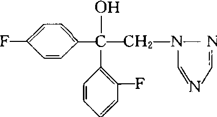 粉唑醇flutriafol杂环类杀菌剂。化学名称:2-(2-氟苯基)(4-氟苯基)-1氢1,2,4-三唑-1-乙醇。化学结构式如下。原药为白色结晶,熔点130℃,溶解度(g/L)25℃水中(pH7~9)0.13,丙酮190,二甲苯12,甲醇69。在酸、碱、热和潮湿的环境中稳定。广谱性内吸杀菌剂。对担子菌、子囊菌中多种真菌引起的病害,具保护和治疗作用,并有一定的熏蒸作用,对真菌的作用机制,抑制菌体细胞麦角甾醇的生物合成,从而抑制菌丝的生长。拌种和叶面喷洒防治麦类黑穗病、白粉病、锈病、玉米丝黑穗病。对人畜低毒,大鼠(♀)急性口服LD50l 480 mg/kg,1140 mg/kg(♂),兔急性经皮LD50>2 000 mg/kg。对皮肤无刺激,但对眼睛有中等刺激。对鱼类毒性较低,对蜜蜂无不良影响。