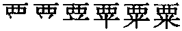 【提示】米,中间是竖,不是竖钩。不要错写成栗。 *粟sù12画 覀部 (1) 北方所说的谷子(籽实去壳后称小米);也指这种农作物的籽实。 (2) 旧时泛指谷类。 粟 ☚ 栗 齊部 ☛ 粟sù甲骨文以来的会意字。象禾带谷实状。《说文》所载籀文从米,误从三个𠧪(tiáo,一种酒器)。战国和小篆从米从一个𠧪,也误。或省去𠧪上的⺊,作,仍不正确。隶书逐渐成“覀”。楷书继承。古代泛称谷类。近代现代粟指谷子。一年生草本植物,花小而密集,子实去皮后就是小米。 粟★常◎常