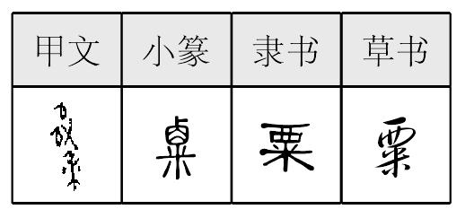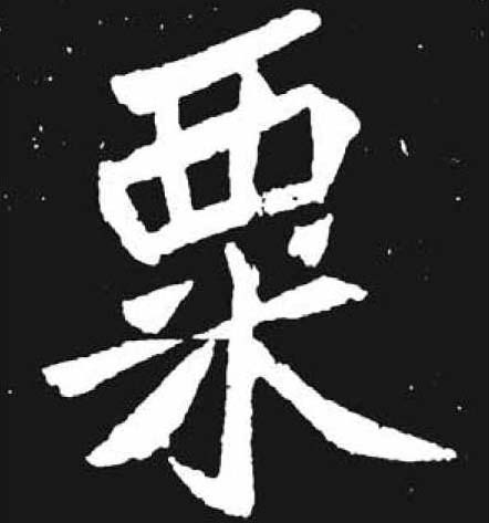 sù表意,甲骨文象果实饱满的禾形;小篆上象谷物饱满的果实,下从米,隶定为“粟”。本义表示成熟的谷子,引申为谷类,假借为姓。 【辨析】 以“粟”作音符构成的形声字一般读sù:僳。粟 (sù)从米,从𠧪。 【按】粟,《説文》:“嘉穀實也。”段玉裁注曰:“古者民食莫重於禾黍,故謂之嘉穀。穀者,百穀之總名。嘉者,美也。”粟的本義是禾穀的果實,即粟子、穀子。 粟 甲 篆 隶sù【析形】会意字。甲骨文字形像以手摘取成熟谷粒的样子。小篆字形谷粒部分讹变作 ,下半变成意符米。隶书字形变后 又讹变作西。 【释义】《说文》:“嘉谷实也。”本义是黍的籽粒,后来引申泛指粮食。粟粒很小,所以用以喻小。[沧海一粟]大海中的一颗谷子,比喻极其渺小。 【shape analysis】It is the associative character. In Oracle, the character is shaped like picking mature grains by hand. The grains transformed erroneously into and the lower part transformed into 米(mǐ,rice) in Small Seal script. The part is transformed erroneously into 西 in Official script. 【original meaning】 The seed of millet. 粟 ☚ 須 業 ☛ 00000830 |
