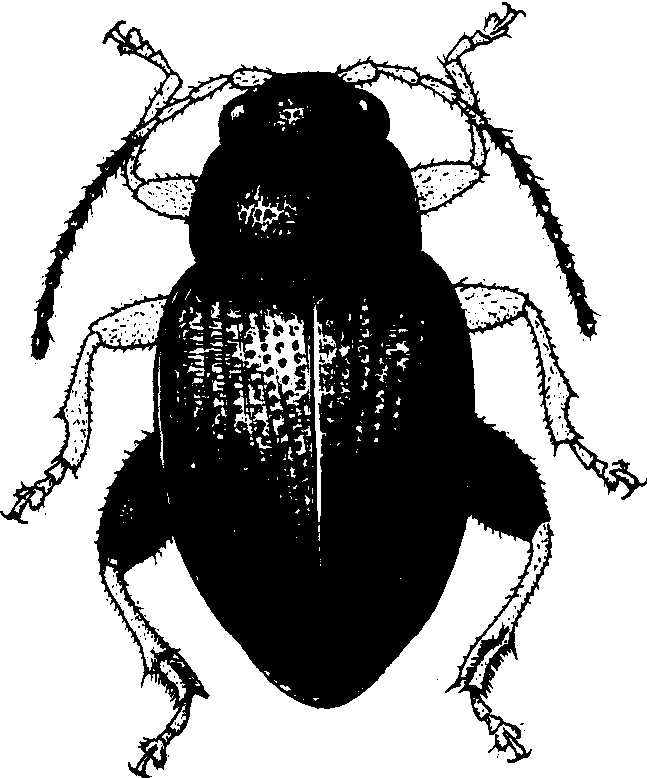 释义 | 粟茎跳甲millet stem flea beetle旱粮蛀茎害虫。又名粟凹胫跳甲、谷跳甲,俗称土跳蚤。学名Chaetocnema ingenua Baly。鞘翅目,叶甲科。分布于日本、朝鲜和中国的东北、华北、西北、华东部分地区。为害多种禾本科植物,但主害谷子,次为糜、黍、高粱。为谷子苗期主要蛀茎害虫。 粟茎跳甲 黑龙江年生1代;吉林中、南部以1代为主,少数2代; 宁夏固原、山西中、北部,内蒙古黄灌区均为2代; 河北中部3代。各地均以成虫潜于土缝、杂草根际土中深1~5厘米处越冬,有杂草覆盖的场所较为集中。翌年春5厘米日均土温回升到10~11℃以上时,陆续恢复活动,14~15℃以上为出蛰盛期。各地世代均不整齐,但都以第一代幼虫蛀苗为害最烈。为害盛期: 黑龙江、吉林等在6月下旬至7月上旬: 山西中、北部和内蒙古等在6月中旬至7月上旬; 河北中部在5月中下旬。成虫能飞善跳,白天活动,喜食谷子、小麦和糜黍等叶肉,残留表皮呈白色不规则纵条纹,甚至全株枯萎。成虫寿命长约一年,多次交配,每隔1~4天间断产卵,卵散产,有时2~4粒相连,多产于谷子根际深0.5~1厘米土中,少数产于谷茎或叶鞘上。每雌产卵百粒左右,多者近200粒。卵期7~11天。第一代幼虫多自近地面的谷苗基部蛀入,约3天心叶萎蔫,渐呈枯心。一头幼虫常可转株为害谷苗2~7株,株高6~7厘米的幼苗受害最重,严重田块造成缺苗断垄; 40厘米以上谷苗,幼虫多潜入心叶为害,入侵早者,谷苗矮化,叶片丛生,不能抽穗; 迟者常造成叶片破烂或谷穗畸形。二、三代幼虫发生期,多在谷子抽穗前后,大多潜入心叶或叶鞘为害。幼虫期10~15天,老熟后于谷株附近深2~5厘米土中筑室化蛹,蛹期8~12天。已发现的天敌有寄生于成虫的茧蜂和小蜂各1种,线虫1种,食卵的肉食螨3种。早播春谷受害一般重于迟播春谷; 重茬谷重于轮作谷;多草田块重于少草田块; 少雨而非亢旱年份或地区常重于多雨年份或地区。在越冬代成虫产卵前,及时喷撒对硫磷、敌百虫,或两者等量混合粉,可收到保苗效果。 |
