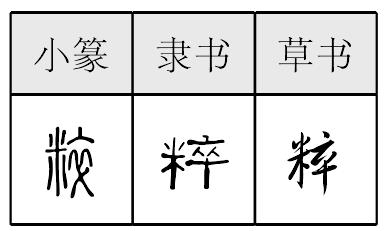 释义 | 粹cùi❶純粹。《後漢書》張衡《思玄賦》:“何道真之淳粹兮,去穢累而票輕。”馮衍《顯志賦》:“昔三后之純粹兮,每季世而窮禍。” 粹读音s·ui(ˋ),为ui韵目,属i—ei—ui韵部。虽遂切,去,至韵。 上一条: 睟 下一条: 彗 粹读音c·ui(ˋ),为ui韵目,属i—ei—ui韵部。虽遂切,去,至韵。 上一条: 琗 下一条: 踤 ![]() ![]() 粹cuì❶纯净;不杂 粹❶纯;不杂:~白︱纯~。 粹cuì❶ 米纯净,没有杂质:纯粹│粹美│粹白。 粹见〔純粹〕〔精粹〕 粹cuì不杂;质地纯。《文子·原道》:“不与物杂,粹之至也。”《远游》:“精醇粹而始壮。”汤炳正今注:“醇粹,纯而不杂。二句谓精气盛于内而形于外。” 粹cui粹白 纯粹 国粹 精粹 纳粹 粹而不杂 驳、杂;纯、醇、粹、单○驳bó(形)〈书〉一种颜色夹杂着别种颜色;不纯净:踳~|~杂|~糅|斑~陆离。 ○杂zá(形)多种多样的;混杂的:~种|~粮|~技|五方~处|~交|~乱无章|错综复~|苛捐~税。 ●纯chún(形)单一;不杂:~粹|~金|~利|单~|炉火~青。 ●醇chún(形)〈书〉纯粹:~和|~化|~厚|清~|大~小疵。 ●粹cuì(形)〈书〉纯粹:~而不杂|~白|纯~|至~无杂。 ●单dān(形)项目或种类少;单一;不复杂:~色|~纯|简~|形~影只。 粹cuì❶ 纯粹。《淮南子·说山》:“貂裘而杂,不若狐裘而~。” 粹*cuìB4E2 精粹 精粹秾粹 髓脑 ☚ 纯粹 杂 ☛ 精华 精华精(精液;精英;精粹;精髓) 英(英精;清英;华英;含~咀华) 粹(文~) 实秀 神髓 华髓 脂髓 髓骨 菁华 菁藻 ☚ 主要部分 片断 ☛ 纯美 纯美粹(醰~) 贞令 纯善 ☚ 鲜美 娇美 ☛ 粹cuì;suì(一)虽遂切,去至。 〖粹〗 粵 seoi6〔睡〕普 cuì ❶ 純美無雜,有詞語「純〜」。許慎《說文解字》:「〜,不雜也。」劉安《淮南子.說山訓》:「貂裘而雜,不若狐裘而〜。」❷ 精華。王安石《讀史》:「糟粕所傳非〜美,丹青難寫是精神。」(糟粕:本指垃圾,借指歷史。丹青:本指圖畫,借指史書。) 粹cuì❶纯,不含杂质。如:纯粹。 粹cuì[书] Ⅰ (纯粹) pure: ~ 白 pure white;~ 而不杂 pure and unadulterated Ⅱ (精华) essence;the best: 国 ~ the quintessence of Chinese culture; 粹*cuì(14画) *粹cuì14画 米部 粹 粹( |