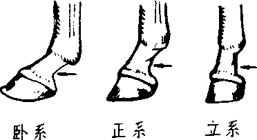 另见:绳子 缠绕 物品 人 动物 ☚ 捆、栓、系、包 捆绑 ☛ 系系统;高等学校按学科划分的单位:~列/~属/~谱/~族/~录/山~/水~/体~/父~/母~/旁~/派~/嫡~/谱~/配~/世~/统~/直~/语~/中文~。又见“繋”。 系係;繫jì;xì(一) 古诣切,去霁。 ❶拴结,悬挂。《荀子·劝学》:“编之以发,~之苇苕。” ❷捆绑,拘囚。张衡《四愁诗序》:“狱无~囚。” ❸关系,涉及。李商隐《行次西郊作》:“又闻理与乱,~人不~天”。 (二) 胡计切,去霁。 ❶继承,继续。班固《东都赋》:“~唐统,接汉绪。” ❷带子;绳子。《乐府诗集·陌上桑》:“青丝为笼~,桂枝为笼钩。” ❸世系,谱系。杜甫《赠比部萧郎中十兄》:“汉朝丞相~,梁日帝王孙。” ❹属,是。《古今小说·沈小官一鸟害七命》:“只除天上有,果~地上无。” 系捆缚,或称拘禁囚犯。《史记·任敖传》:“吏系吕侯,遇之不谨。”《后汉书·光武纪》,建武五年(公元28年)诏:“其令中都官、三辅、郡、国书系囚,罪非犯殊死,一切勿案。”《文选》汉张平子(衡)《四愁诗序》:“郡中大治,争讼息,狱无系囚。” 系xì冠帽、鞋履等的系带。《韩非子·外储说左下》:“晋文公与楚人战,至黄凤之陵,履系解,因自结之。”《后汉书·五行志一》:“延熹中,京都长者皆著木屐;妇女始嫁,至作漆画五彩为系。”又《舆服志下》:“武冠,俗谓之大冠,环缨无蕤,以青系为绲,加双鹖尾,竖左右,为鹖冠云。”北朝无名氏《捉搦歌》:“黄桑柘屐蒲子履,中央有糸两头系。” 系pastern马四肢下端,位于球节与蹄之间的部位。以系骨为基础所构成(见“马体部位”图)。系的长短,粗细和倾斜度,对腱的负担和运步的弹性都有关系。通常有3种类型: ❶正系。系的长度和粗度适中,与地平线的倾斜度,前系为45°~50°,后系为55°~60°,正系有利于马的运动和持久力。 ❷卧系。与地平线所形成的角度过小的系,大多为系过长所致,屈腱的负担大,易于疲劳,支持力也差。 ❸立系。与地平线所形成的角度过大的系,大多因系过短或蹄后壁过高的缘故。挽马多有立系,可减轻韧带与屈腱的负担,有利于持久力,而乘用马的立系弹力差,不易消失地面的反冲力。