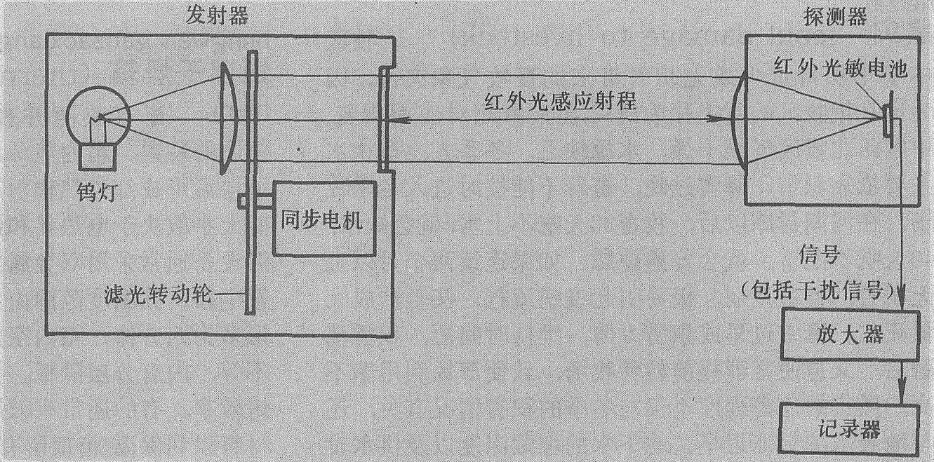 释义 | 红外湿度计hongwai shidujiinfrared hygrometer利用水汽能吸收一定波长红外辐射的原理进行测湿的仪器。红外湿度计使用两个狭窄的红外辐射带工作,一个辐射带是水汽很敏感的吸收波长 (如2.60微米),另一个辐射带则是水汽几乎完全不吸收的波长(如2.45微米)。这两个辐射带能量的比值服从比尔定律(Beer's Law): 红外湿度计结构示意图 仪器工作时,红外光源发射出稳定的红外辐射穿过空间到达探测器,再经过透镜聚集被红外光敏电池接收并转换成电信号,经放大滤波后由显示器进行记录显示。在发射器内有一个由同步电机带动的滤光转动轮,轮上相间安装着上述两种不同波长的滤光片。因此,同一光源通过滤光转动轮的滤光便交替产生了两个狭窄的红外辐射带。当滤光转动轮中水汽不吸收那个波长的滤光片转到光通路中时,接收器接收的能量为E0;当能被水汽吸收的那个波长的滤光片转到光通路中时,接收器所接收的是被水汽部分吸收后的辐射能E。空气中的水汽含量愈大,E愈小。有了E0和E两个数据即可求得空气中的水汽含量。 红外湿度计所测量的是整个L距离内的水汽量的总和,是该距离内的平均情况。气温在0℃以上,空气中水汽含量较低时仪器的灵敏度较高,对水汽的响应速度也快,但在气温低于零度以后,其灵敏度将下降。 |