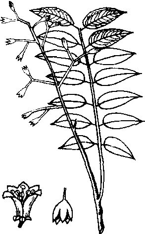 释义 | 红楝子suren toonaToona sureni(Bl.)Merr.,又称红椿。楝科,香椿属。落叶乔木,高达20 m。幼枝被锈色毛。羽状复叶,长25~40 cm,小叶7~8对,卵状披针形,长8~15 cm,宽2.5~6 cm。圆锥花序顶生;花白色,芳香,5出数。蒴果长椭圆形,有斑点,5室开裂,每室有种子8~10。种子两端具翅。分布于广东、广西、云南、安徽等省区,生于低海拔丘陵山地;印度、印度尼西亚也有分布。木材红褐色,耐腐,供建筑、细木工等用材。 红楝子 |