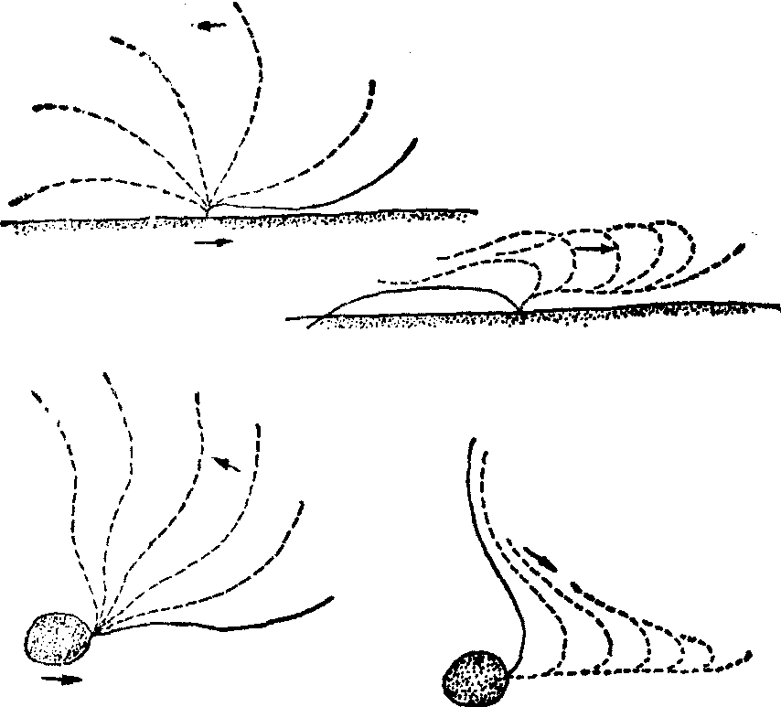 释义 | 纤毛和鞭毛的运动 纤毛和鞭毛的运动动物和人体内许多细胞的表面伸出数目不等、长短不一的丝状突起,凡是数目少(单根或双根)而较长的丝状突起,称为鞭毛;凡是数目多而较短的丝状突起,称为纤毛。动物和人体的某些细胞(如气管上皮细胞)借纤毛有节奏的运动可以促使附在细胞表面的细小物体移动。某些低等的单细胞生物以纤毛(如草履虫)或鞭毛(如眼虫)作为游动的细胞器。动物和人体的精子具有鞭毛,借鞭毛进行运动。 图1 纤毛运动时微管的滑动由于微管的滑动导致纤毛弯曲 邻近双联管结构间的移动,以及纤毛和鞭毛弯曲的动力是借ATP(实际是Mg2+—ATP) 的水解作用而供给的。水解作用和化学能转换为机械能的作用可能是由亚纤维A上动力蛋白的短臂引起的。动力蛋白可被认为是一种肌球蛋白样的ATP酶。最近的研究说明,一小部分男性不育的病人是由于其精子的鞭毛缺乏这种动力蛋白而不能活动。慢性咳嗽和反覆肺感染的大多数病人,是由于呼吸道缺乏纤毛运动,不能有效地清除粘液和被吸入肺内的尘粒而引起。 图2 纤毛和鞭毛的运动 上图:纤毛的运动方式;下图:鞭毛的运动方式; 箭头分别示摆动(向左)和回覆(向右)的方向 鞭毛的运动是以正弦曲波方式进行,一般自基部(头)向尖端(尾)运动。单细胞生物体通常用这种自头部开始的摆动在水中推进身体。但有些微生物,如鞭毛虫的游走则始于尾部的摆动。纤毛运动以典型的击拍方式进行,即以直的臂作有力的击拍,尔后作回覆的击拍(图2)。这种运动使生物体能在水中运动,或者清除细胞表面的液汁或颗粒。 运动的调节 细胞上所有的纤毛运动是相互协调的,只是在某些情况下运动的速度和方向可能有改变。纤毛的击拍与离子流有密切关系。例如草履虫冲击物体时其纤毛发生倒击拍。纤毛倒行是由于Ca2+流的诱发,伴随着产生一个Ca2+依赖的动作电位的去极化。又如从后方击撞物体时产生K+流,随着出现细胞膜的超极化和一个增大的向前推进的击拍。 纤毛能够协调地进行击拍,从而引起细胞表面出现像麦浪似的可见波动,称继时性波。此外也有一些生物,其鞭毛能以联合行动协调地进行击拍运动。例如单胞藻(chlamydomonas) 的两根鞭毛从细胞内连同其基体结构同时分离出来后,它们仍能连续地同时进行击拍。 纤毛和鞭毛的发生 纤毛和鞭毛起自基体。基体结构的列式为“9+0”,说明它有9根外周小管结构,而无中央小管。 基体以微管组成纤毛和鞭毛的中心,纤毛的形成开始于基体。新基体借老基体复制而成。轴丝双联微管结构由基体外周小管直接延伸而来。轴丝中央的一对单微管出自基体与纤毛连接处的轴小体。轴丝一旦形成,其结构十分稳定,但又非持久不变。如单胞藻的两根鞭毛中的一根被折断后,在受损的这一根再生时,另一根完整的鞭毛会暂时卷缩。 ☚ 变形运动 肌细胞的运动 ☛ |
