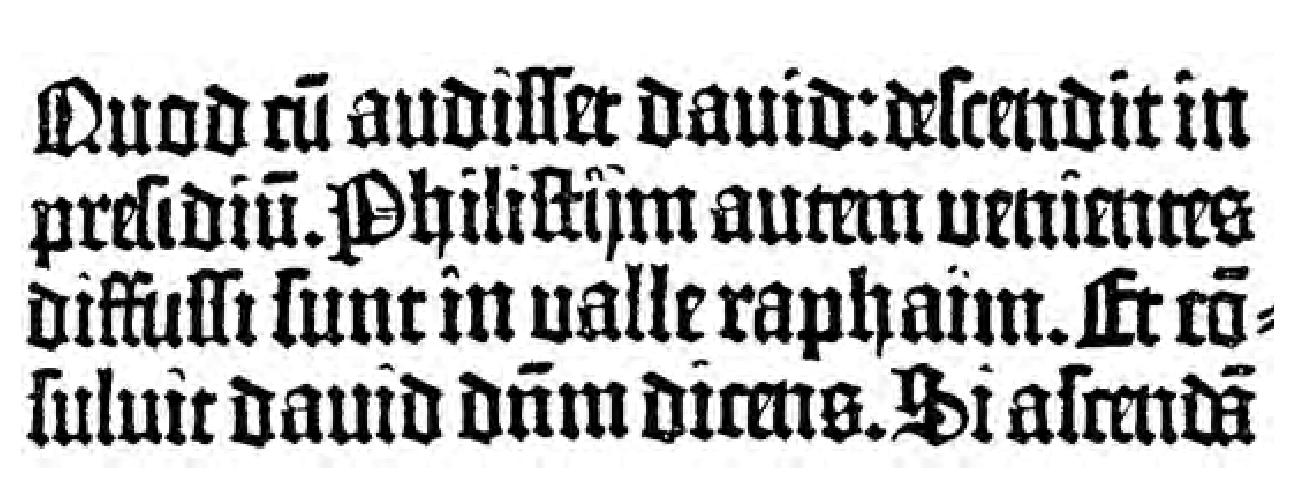 释义 | 纺织体纺织体(Textualis或Textura,来源于拉丁文“Textur”,意思是纺织物、布匹)是由北法兰克王国的古哥特小写体发展而来,一直沿用到15世纪末期。它是哥特体高度发展的一种书籍字体,因此也经常被称为哥特体。 纺织体的“A”和“a” 纺织体的历史可以追溯到公元12世纪。在那个时代,用哥特体手写而成的书页中就已经出现了封闭的、如纺织物般交错的字形。 纺织体最引人注目的特征,便是字形中折断的线条,它们让人联想到哥特式大教堂的尖顶,而如游戏般相互转换的粗细笔画也同样富有特色。这两个特征都有赖于鹅毛笔,它替代了植物制成的芦苇笔成为主要的书写工具。 纺织体的其他特征还有:通过延长字杆来强调字母的纵向笔画;纵向笔画底端菱形化的趋势越来越显著。这些字形特征让纺织体字母从整体造型上趋近于正方形或长方形。 典型的纺织体,出自古腾堡1452年印刷的42行《圣经》。 约翰内斯·古腾堡是铅合金活字印刷术的发明者,他把纺织体选作自己的第一批印刷字母的样本字体。在印刷的时候,古腾堡共使用了290个纺织体活字。 在美因茨印刷的古腾堡《圣经》(约公元15世纪中叶) |