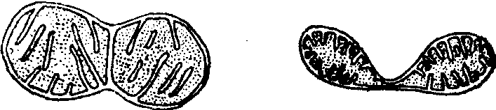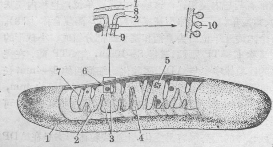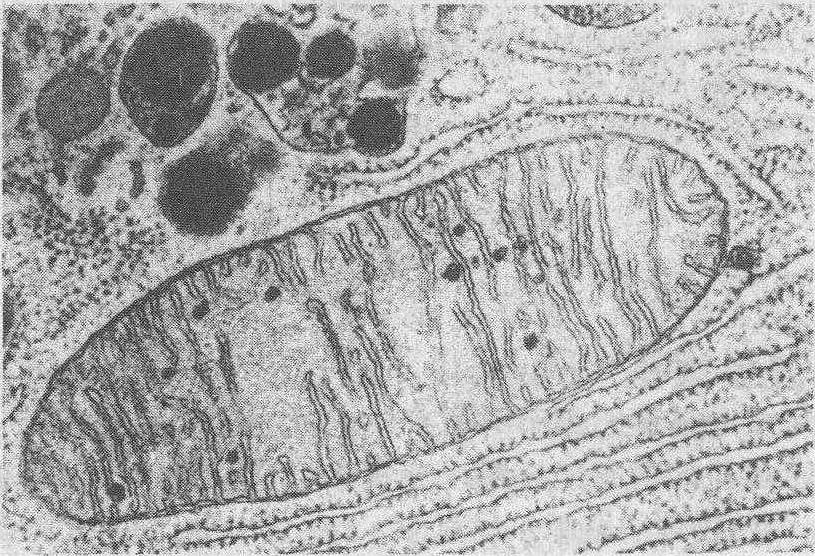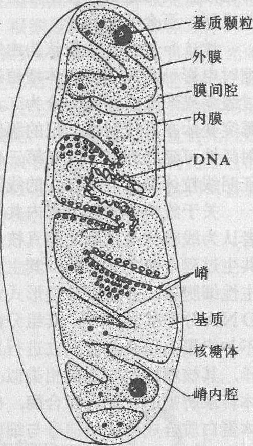 复合体Ⅰ能使NADH氧化而还原泛醌(VQ);复合体Ⅱ能使琥珀酸氧化成延胡索酸而还原泛醌; 还原型泛醌能在内膜的脂相内游泳,而将质子(H+) 和电子(e-)传递给复合体Ⅲ,后者能使还原型泛醌氧化而使细胞色素C还原; 还原型细胞色素C在膜间腔内游泳,而将电子传递给复合体Ⅳ,后者能使还原型细胞色素C氧化而将氧分子还原成水。 由于复合体Ⅰ、Ⅲ、Ⅳ均能利用生物氧化作用产生的电能而作功,将基质内的质子(H+)主动运输到内膜外,起了质子泵的作用,其结果使内膜内侧质子浓度低于内膜外侧,质子便有从外向内扩散的被动运输趋势,即形成了质子动力,它具有作功的可能。当质子顺着浓度梯度由线粒体外经内膜上的复合体Ⅴ进入基质时便提供能量,使腺苷二磷酸(ADP)与无机磷酸合成ATP。因此,复合体V即为ATP合成酶系统。 复合体V亦称ATP酶复合体,分成基片(Fo)、柄(OSCP)和球头(F1)三部分。其中基片为内膜上的质子通道; 柄部为控制质子流的阀门; 球头则为利用质子动力合成ATP的活性部位,球头即电镜下所见的基本颗粒。复合体V亦是所谓偶联因子的生物学实体。 基质 在内膜围成的腔内含有许多可溶性蛋白,包括催化三羧酸循环、脂肪酸氧化和氨基酸降解等有关酶系,还有DNA、RNA、核糖体以及与DNA复制、转录有关的酶系。基质内含有少量致密颗粒,称基质颗粒,直径为20~60nm,是一些积累在线粒体内的钙离子和其他二价阳离子的磷酸盐颗粒。 植物细胞的线粒体与动物细胞的基本相同,但有不被氰化物或一氧化碳所抑制的电子传递系统,也不存在细胞色素C,却含有细胞色素b7。植物细胞的脂肪酸β氧化作用不在线粒体,而在乙醛酸循环体中进行。 线粒体的半自主性 线粒体具有完整的遗传系统,能进行遗传信息的复制、转录和翻译,但由于遗传信息量不够,大部分蛋白质仍需细胞核遗传系统提供,故线粒体只具有半自主性。多数动植物细胞的线粒体DNA都是裸露双螺旋环状分子,不与组蛋白结合,类似细菌DNA。一个线粒体中可含一至数个DNA分子,因此每个细胞中的线粒体DNA的数目很多,这些DNA分子的核苷酸顺序均相同。线粒体的遗传密码比较特殊,如UGA在线粒体中不是终止密码,而是蛋氨酸的密码和起始密码,AGA和AGG不代表精氨酸而是作为终止密码使用。玉米的细胞色素C氧化酶亚基Ⅱ的编码基因中UGG,CGG和UGA一样作为色氨酸的密码使用,故线粒体的遗传密码因生物种类的不同而有所差异。植物细胞线粒体的DNA含有植物雄性不育的基因,在其控制下,可合成控制雄蕊正常发育或雄性不育的一些蛋白质,农业上可用以测知植物不育系类型。 线粒体具有合成蛋白质的全套机构,包括mRNA、tRNA和核糖体。其分子量、沉降系数和核苷酸顺序均与核遗传系统不同,线粒体核糖体比较小,与细菌的相似,在基质内与内膜结合。对药物的敏感性也与核遗传系统不同,如氯霉素可抑制线粒体和细菌的蛋白质合成,而不抑制细胞质蛋白质合成; 环己亚胺能抑制细胞质蛋白质合成,但对线粒体和细菌却不起作用。线粒体中合成的蛋白质仅占线粒体蛋白质的10%,约10种左右,且多数是疏水性蛋白质。 由于线粒体DNA复制和基因表达所需的DNA聚合酶、核糖体蛋白质和各种氨基酸活化酶等均由核基因编码,在胞质核糖体上合成后再转移到线粒体,可能核-细胞质蛋白质合成系统就是通过合成这些物质来调节线粒体蛋白质合成系统的活性。另一方面线粒体也能合成阻遏物,控制核基因的表达。两者间的调节机制,至今所知甚少。 增殖和起源 一般认为由线粒体分裂而来。利用缩时电影可观察到线粒体增殖过程,它首先延长,通过缢缩或形成间隔而一分为二。将胆碱缺陷型的链孢霉突变体在有放射性标记的胆碱培养基中培养,其放射活性可延续到第二代和第三代,利用此种技术也可证明线粒体确由原来存在的线粒体产生。 关于线粒体的起源有内共生假说和分化假说。前者认为线粒体是被原始前真核生物吞噬的细菌在长期共生过程中演化而来的,其主要根据是线粒体是半自主性细胞器,并能以分裂形式繁殖; 线粒体与细菌的DNA分子都呈环状,其组分都缺5-甲基胞嘧啶,也不与组蛋白结合,能独立进行DNA复制、转录和翻译,其核糖体也与细菌相类似; 利福霉素能抑制线粒体转录所需的RNA聚合酶,也与细菌相类似; 线粒体蛋白质合成的起始信号与细菌相似,均是N-甲酰蛋氨酸,而不是真核细胞的蛋氨酸; 线粒体的内膜与原核细胞质膜相似,而外膜却与真核细胞相近,这些证据都支持了内共生发源说。分化假说认为线粒体是细胞进化过程中由质膜内陷而成。 线粒体mitochondrion真核细胞内一种半自主的细胞器。包括3部分: 线粒体真核细胞中细胞质内的粒状或棒状的细胞器。1894年由阿尔特曼(R.Altmann)首次发现。20世纪70年代发现线粒体是动物细胞内唯一含有DNA的细胞器。直径0.5~1.0 μm,长度1~2 μm,最长可达7 μm。具有内、外2层单位膜,厚为5~7 nm。内外膜间有宽为6~8 nm的膜间腔。外膜包围于外,内膜向内折叠成嵴,嵴膜内表面有基质颗粒,直径8~9 nm,间距约10 nm。每个线粒体约有104~105个基质颗粒。 线粒体 线粒体xianliti广泛存在于真核细胞的细胞质中的一种由双层单位膜围成的细胞器,是细胞呼吸产生ATP的主要场所。最早发现线粒体的是R.A.科里凯尔(Kolliker)(1857),C.贝达(Benda)于1897年命名为线粒体。线粒体用詹那绿稀溶液活体染色后,在光学显微镜