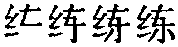 练練❶把丝、麻或布帛煮熟,使洁白柔软。 ❷白绢:白~︱彩~。 ❸练习;训练:~队︱~操︱~兵︱~武︱~功︱闯~︱拉~︱演~排~︱训~︱教~︱勤学苦~。 ❹经验多;纯熟:~达︱稳~︱老~︱干(gan)~︱熟~︱谙(an)~︱简~︱精~︱凝~。 练liàn❶ 白色的绢:白练。 ❷ 反复操作,训练:练习│练功。 ❸ 纯熟,经验多:练达│熟练。 ❹ 姓。 练liàn练习,训练,纯熟。 【词汇】训练︱熟练︱练习︱老练 【组词】反复练︱勤学苦练︱练书法 【例句】今天练好身体,明天为祖国出力。 ❍ 李小萌在书法班学习,每天回家练大字。 【近义】训︱习 练liàn❶比试,较量。如:少废话,有本事出去~!/“哪儿~?”在哪里较量? ❷耍贫嘴,练贫的简称。如:别没事跟这儿~来! ❸论辩。如:他再挤兑你,我就找他~去。 ❹干,做。如:邮递员~一天也够辛苦的。 练lian练笔 练兵 练操 练达 练队 练功 练摊1 练武 练习练饷 谙练2 彩练 操练 晨练 闯练 干(gan)练 简练 教练 精练 苦练 拉练 老练 历练 磨练 凝练 排练 熟练 稳练 洗练训练 演练 练习本 练习器 练习曲 练习题 练兵秣马 练达老成江平如练 勤学苦练 练lian练习;训练:小兰学京剧,每天都要~嗓子,~武艺|国庆节要举行歌咏比赛,我们每天都在~唱|你的字写得不好,应该~一~。 练liàn❶教练:亲酿美酒一瓮,素~魔舞歌姬数人,新填红楼梦仙曲十二支。(五·103) ❷拴;缆:鸳鸯道,“凑成铁锁~孤舟”。 宝钗道,“处处风波处处愁”。(四十·927) 古代名物 > 紡績類 > 製品部 > 絲織品 > 練 練 liàn 白色熟絹。《急就篇》卷二:“綈絡縑練素帛蟬。”顔師古注:“練者,煮縑而熟之也。”《左傳·襄公三年》:“使鄧廖帥組甲三百,被練三千,以侵吳。”漢·王充《論衡·累害》:“青蠅所汙,常在練素。” 练liàn北京地区市井谓殴斗。 练練liàn❶ 把丝麻或布帛煮得柔软洁白。《淮南子·说林》:“墨子见~丝而泣之。” ❷ 白色的熟绢。《论衡·累害》:“青蝇所污,常在~素。”(素:白色的生丝。)谢朓《晚登三山还望京邑》:“余霞散成绮,澄江静如~。” ❸ 练习,训练。《后汉书·李固传》:“养身者以~神为宝,安国者以积贤为道。”《北史·齐高祖纪》:“三方鼎峙,缮甲~兵。” ❹ 熟练,干练。《后汉书·胡广传》:“达~事体,明解朝章。”《三国志·蜀书·诸葛亮传》:“庶事精~,物理其本,循名责实,虚伪不齿。”(庶事:众事。) ❺ 选择。《汉书·邹阳传》:“今吴楚之王,~诸侯之兵。”《文心雕龙·练字》:“是以缀字属篇,必须~择。” ❻ 冶炼。《列子·汤问》:“昔者女娲氏~五色石以补其阙。” ❼ 通“链”。链子。魏禧《大铁椎传》:“柄铁折叠环复,如锁上~。” 练*練liànC1B7 ❶白色的熟绢:江平如~/~鹊。 ❷反复地操作、学习以求精美、纯熟:勤学苦~/~兵/~劲。 ❸经验多;熟悉:老~/干~/熟~/~达。 ❹〈文〉把生丝或织品煮得柔软洁白(见《玉篇》)。 ❺<文>熔炼。后作“练”:方士欲~以求奇药(《史记》)。 ❻姓。 白色 白色白(玉~色;纸~色;骨~色;牙~色;蜡~色;铅~色;象牙~;菱花~;~玫瑰色) 缟(缟素) 素(素色;~丝;霓裳素) 皤 霜(霜色) 雪(雪色;雪彩;雪霜;~发) 练(练色) 粉色 贵色 马良眉 比喻白色:鹤(~发) 白色的:粉 像白垩土样的颜色:垩白 白垩色 像枯草样发白的颜色:草白色 一片白色:白茫茫 白漭漭 白迷迷 鲜明的白色:鲜白 白中略带银光的颜色:银白 像银子一样的颜色:银 银白闪光的颜色:银色 纯净的白色:皓白 粹白 真白 纯白色 柔和的白色:柔白 不纯的白色:霜斑 霜点 花白色:斑苍 ☚ 白 白里带其他色 ☛