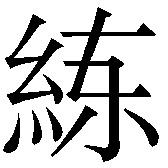 另见:反复 学习 实践 熟练 掌握 技能 知识 ☚ 练习 训练 ☛ 练練liàn郎甸切,去霰。 ❶煮练。《淮南子·说林》:“墨子见~丝而泣之,为其可以黄,可以黑。” ❷熟练,精通。《宋书·王僧绰传》:“好学有理思,~悉朝典。” ❸训练。《北史·齐高祖纪》:“三方鼎峙,缮甲~兵。” ❹通“择”。选择。《汉书·邹阳传》:“今吴楚之王~诸侯之兵,驱白德之众,西与天子争衡。” ❺白色的熟绢。《论衡·累害》:“青蝇所污,常在~素。” ❻精强,干练。见“精练” ❷。 练liàn父母死后十一个月在家庙里举行祭祀时穿的熟绢制成的衣服。父母去世,子女例应着粗麻丧服,至十一个月祭于家庙,则可穿着练冠、练衣。《周礼·春官·大祝》:“付练祥。”《礼记·杂记下》:“期之丧,十一月而练,十三月而祥,十五月而禫。三年之丧,虽功衰,不吊,自诸侯达诸士,如有服而将往哭之,则服其服而往。”汉郑玄注:“功衰,既练之服也。” 练練liàn❶白绢。如:江平如练。 ❷把生练煮熟,使之柔软洁白。 ❸练习,训练。如:练兵,练功,苦练。 ❹经验多,纯熟。如:熟练,老练,练达。 ❺姓。 练(練)liànⅠ ❶ (白绢) white silk: 江平如 ~。 The river lies as smooth as silk. ❷ (姓氏) a surname: ~ 何 Lian He Ⅱ ❶ (加工处理生丝) treat, soften and whiten silk by boiling; boil and scour raw silk: ~ 漂熟丝 scour and bleach silk ❷ (练习; 训练) practise; drill; train: 操 ~ drill; 排 ~ rehearse; 教 ~ train; drill; coach; ~ 嗓子 practise singing Ⅲ (经验多; 纯熟) experienced; skillful; well-trained: 干 ~ capable and experienced; 老 ~ experienced and assured ◆练兵 troop training; training; 练操 drill; 练达 mastership; 练队 drill in formation; drill for a parade; 练功 do exercises in gymnastics, wushu, acrobatics, etc.; practise one's skill; 练漂scouring and bleaching; 练气功 do breathing exercises; practise qigong; 练球 practise a ball game; 练鹊 {动} long-tailed flycatcher; 练摊 set up a stall; 练武 do weapon practice; practise martial arts; practise wushu; 练习 practise; practice; exercise 练蚕丝或丝绸加工工艺的一种。丝和帛在染色之前必须先行精练。丝帛经精练后,容易染色。各种帛、绢、罗、绮等都可以织成后染色,而锦和绣则需要在织或绣之前,先将丝染色。《周礼·考工记·㡛氏》:“湅丝,以涚水沤其丝,七日。去地尺,暴之。昼暴诸日,夜宿诸井,七日七夜,是谓水湅。湅帛,以栏为灰,渥淳其帛,实诸泽器,滛之以蜃,清其灰而之,……昼暴诸日,夜宿诸井,七日七夜,是谓水湅。”“湅”,即练。练丝是白天把生丝放在和了灰水的温水里浸渍,然后晒干,夜间悬在井里浸洗,如此反复浸晒7日7夜。练帛与练丝相似,只是用较浓的楝木灰汁,并拿蜃蛤壳烧成灰和水浸渍,都是为了利用碱性溶液来去除丝帛上的污垢和油脂。直到近代,这种练丝、练帛的方法,在一些旧式染房中仍然使用。湖北江陵马山1号楚墓出土的绢,有红、棕、黄等多种颜色,绝大多数都是经过煮练后的熟绢,生绢较少。说明战国时期,楚人的练丝、练帛工艺已达较高的水平,经煮练后的绢已能染成多种颜色。 练liàn ❷ 老练通达|训练有素