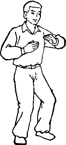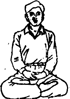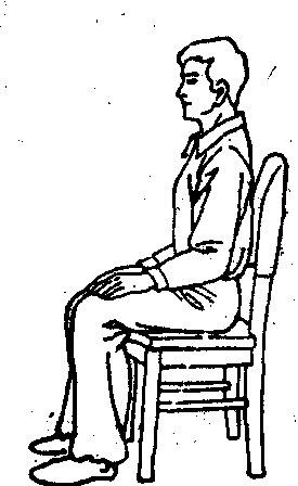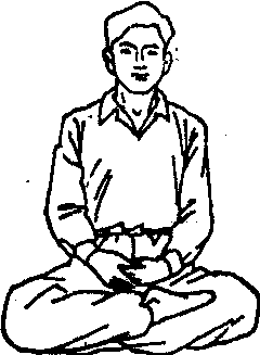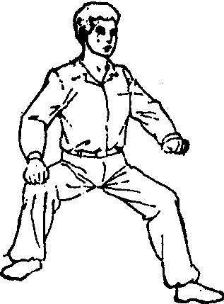 释义 | 练功基本方法 练功基本方法气功锻炼的基本方法,是指气功的指导者、练功者,必须了解或掌握的若干功法,目前一般分为调身、调息、调心三大类。 这“三调”的分类, 起自隋·智𫗱的 《童蒙止观》。但每一次气功锻炼,都是调身、调息、调心的有机结合。 图1 ![]() 图2 ![]() 图3 (3) 盘坐式: 可用木制矮方凳,凳面要方形略大些。普通木床或坑、地面上铺坐垫或蒲团也可盘坐。盘坐式可分为三种: ❶自然盘:上半身与平坐姿势相同,身体略向前倾,臀部稍垫高,两腿交叉盘起,左上右下或右上左下均可;两手互轻握,置于腹前,或分放大腿上(见图3)。 ❷单盘,将左脚置于右腿上,或将右脚置于左腿上,其余均同自然盘(见图4)。 ❸双盘:将左脚置于右腿上,同时将右脚置于左腿上,两脚心俱上仰朝天,其余均同自然盘。盘坐有助于思想安静,又因下肢稍紧张,对上身及头部的紧张状态易于解除。老年人宜少做盘坐,或只做自然盘坐(见图5)。 ![]() 图4 ![]() 图5 ![]() 图6 (4) 跪坐式: 两膝着地,脚掌朝上,身体自然坐在脚掌上,两手互相轻握,置于腹前,其余同平坐式(见图6)。它也是下肢比较紧张,有利于头部及上半身的松弛。 卧式 卧式是气功锻炼中用得比较多的姿势。其中仰卧原是最普遍的,古代称为“正身偃卧”。陶引景在《养性延命录》中则提出了“屈膝侧卧”、“益人气力”之说。常用的有: (1)仰卧式: 全身仰卧床上,头正,枕高低适宜,轻闭口眼,四肢自然伸直,两手分放身旁,或相叠于腹部。本式适宜于体弱病人及睡前练功用(见图7)。但容易入睡,或形成昏沉。因此体力转好时或较好者,应逐步增加坐式或站式。 ![]() 图7 仰卧式 (2) 侧卧式: 侧身卧于床上,左右侧卧均可,但一般采用右侧卧,腰部宜稍弯,身成弓形;头略向胸收,平稳着枕,口眼轻闭,上侧的手掌自然放在髋胯部,下侧的手置于枕上,手掌自然伸开,下侧的小腿自然伸直,上侧的腿弯曲放在下侧腿上。不习惯仰卧的人可做本式,本式腹部较松,易形成腹式呼吸(见图8)。 ![]() 图8 侧卧式 (3) 三接式: 左或右侧卧,下侧手掌心之劳宫穴,按在上侧手肘部的曲池穴; 上侧的腿屈膝上提,上侧的手掌心劳宫穴,按在此上侧膝部的鹤顶穴; 上侧脚心涌泉穴,接在下侧膝部的鹤顶穴。三接式适宜于体质虚弱、中气下陷的内脏下垂者,亦易于形成腹式呼吸(见图9)。 ![]() 图9 三接式 (4) 半卧式: 在仰卧的基础上,将上半身及头部垫高,斜靠在床上,也可在膝下垫物。此式适宜于心脏病人、哮喘患者及体力极差的病人(见图10) ![]() 图10 半卧式 站式 站式除古代动功外,在静中采用得比较少,在隋 ·巢元方等《诸病源候论》中仅有立身、倚壁、蹲踞等少数几种。现代常用的有: (1) 三圆式: 又称抱拱式。两脚左右分开,间隔与肩同宽,两脚尖内八字,站成一半圆形。两膝微屈,收胯直腰,不要挺胸、两臂抬起,两手与乳部平,作环抱树干状。两手手指均张开,弯曲如抱球状,两手掌心相对,距离二十公分左右,呈脚圆、臂圆、手圆状。头部正直,两眼睁开,平视前方某一目标,或向下看前方1~2米地面某目标。口轻闭,舌尖轻抵上腭(见图11)。 ![]() 图11 三圆式 (2) 下按式: 两脚左右分开,间隔与肩同宽,两臂下垂于两侧,两手指伸直向前,掌心似按向地面。余如三圆式(见图12)。 (3) 伏虎式: 左脚向前跨出一步,两脚相距一米余,成丁字步。身体稍向下蹲,如骑马形,前后两腿均成90度角。左手置左脚上方,右手竖在右膝上,均与膝部相距约15厘米左右,左手似按着虎头,右手似把着虎座。头部正直,眼向左前方平视。也可向右侧做(见图13)。 ![]() 图12 下按式 ![]() 图13 伏虎式 站式适合于健康的人,或体力较好的患者。对高血压、青光眼或体质较强的神经衰弱病人,尤为适宜。它是利用下部的紧张,以促使上部的松弛。至于伏虎式的锻炼,要在前两式的基础上进行,它有强筋壮骨的作用。站式一般都在室外做,时间可逐步增加,以30~50分钟为度。初练感腰腿酸楚,可稍坚持一下。 走式 走式原是气功锻炼中最少用的姿势。常用走式有太极步。操作如下: 身体自然直立,两足分开成平行步,两手交叠,置于小腹部。先以左足向前移一小步,左膝自然挺直,左足跟着地,足尖朝上,同时右膝微下曲。然后左足底全部着地,左膝稍向前弓出,上半身随之前倾,右腿自然挺直。再慢慢提起右腿,向前移动,与左足平行,右足尖轻轻贴地,同时膝微弯曲,此时重心在左足。继之右足前移一小步,以后各动作如前,左右交替前进。两眼睁开,平视正前方,或向下看足尖。头部正直,松肩垂肘,上半身要自然舒适。每次可走20~30步。走式太极步是一种下肢运动,适宜老年人进行腰腿的锻炼。 各种练功姿势虽是从日常生活姿态上发展起来的,但都具有各自的特有形态,有一定的要求,应加以注意,至于它总的要求,是要“四要两对”。四要: 一要塞兑垂帘,即轻合嘴,轻闭目,露一线之光;二要沉肩垂肘,即两肩松开,两肘下垂; 三要松颈含胸,即颈部松弛,胸略内含; 四要舒腰松腹,即坐则腰直,侧卧腰弯,腹部放松。两对: 一为鼻与脐对,即正面视之,鼻与脐成一直线; 二为耳与肩对,即侧面视之,耳直对肩。 对具体姿势的选择和运用,要从练功者的病情、体质、意守部位、练功阶段、气候环境、习惯等情况出发,既不能放任自流,要有一定的规格,又不能忽视由粗到精,逐步适应的过程。为了使练功者更好地掌握姿势的锻炼,指导人员的经常检查纠正