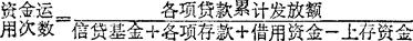 这个公式的商数就是信贷资金在一年内的周转次数。公式中,各项贷款累计发放额是指全年发放贷款的总数额。信贷基金、各项存款按年平均余额计算,借用资金或上存资金按联行往来科目余额轧差后的数字,计算年平均余额。