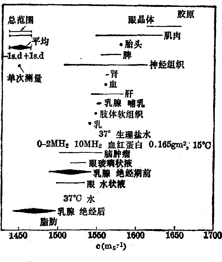 释义 | 组织的超声鉴别 组织的超声鉴别超声波在生物组织内传播时与生物介质相互作用,利用组织对超声波的响应可以从超声信号中获取组织结构的信息。所谓生物组织的超声鉴别就是通过测量组织的超声参数间接地估测组织结构的物理学参数,如组织的密度、排列方向、内部及表面结构及其与病理变化的联系等。上述超声参数包括超声在组织中的传播速度、介质对超声的衰减与吸收、声阻抗、散射能量的频率分布(频谱)及散射角。 图1 组织的超声传播速度 生物组织中的超声传播速度如图(1)所示。 声场中某位置的声压p为 p=P-P0 (2)式中P为声场中某一点的瞬时压强,P0为介质的恒定平衡压强。 声场中某位置的声压p与该位置的质点速度v的比值被定义为该位置的声阻抗率zs, zs=p/v (3)声阻抗率zs一般可能是复数,在理想媒质中声阻抗率的实数部分反映了能量从一处向另一处的转移 (传播损耗)。在平面声场中各位置上的声阻抗率数值上都相同,且为一实数ρ0c。这反映了在平面声场各位置上都没有能量的贮存,前一个位置上的能量可以完全被传播到后面的位置上去。乘积ρ0c值是介质固有的一个常数,它称为介质的特性阻抗,记为R。 软组织的密度、弹性性质和声速都与水十分相近。所以可以采用处理液体的方法近似地处理软组织。 各种生物组织的密度和特性阻抗的数值并不相同 (表1) 一列平面波从一媒质垂直投射到媒质的分界面上,由于分界面二边媒质的特性阻抗不一样,一般就会有一部分声波被反射回去,另一部分透入界面另一边的媒质中去。在分界面上反射波声压与入射波声压之比rp,反射波质点速度与入射波质点速度之比rv,透射波声压与入射波声压之比tp以及透射波质点速度与入射波质点速度之比tv分别为 表1 生物组织的密度和特性阻抗