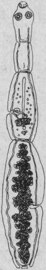 细粒棘球绦虫Echinococcus granulosus系狗肠道的一种寄生虫,故也称狗绦虫。人吞食其卵则在体内发育成幼虫,患包虫病。此绦虫是绦虫中体积最小者,长约2~6mm,由1个头节和3个体节组成。头呈梨形,有顶突及4个吸盘,顶突上有头钩28~50个。体节有未成熟体节、成熟体节、妊娠体节。其虫卵随狗粪便排出体外,易造成感染。 细粒棘球绦虫echinococcus granulosus成虫寄生在狗或狼、狐等终宿主的肠内,长3~6mm,宽0.5~0.6mm,雌雄同体,虫体分节,除头部和颈部外包括幼节、成节和孕节各一。虫卵随终宿主粪便排出,为羊、牛、猪、马等中间宿主吞食后,在十二指肠内孵出的幼虫穿入肠壁,随血流进入肝脏,发育成棘球蚴。含有棘球蚴的羊或其他中间宿主的新鲜肝脏被狗等终宿主吞食后,在肠内发育为成虫。人如误食其虫卵,亦可成为中间宿主而引起棘球蚴病,即包虫病(图)。