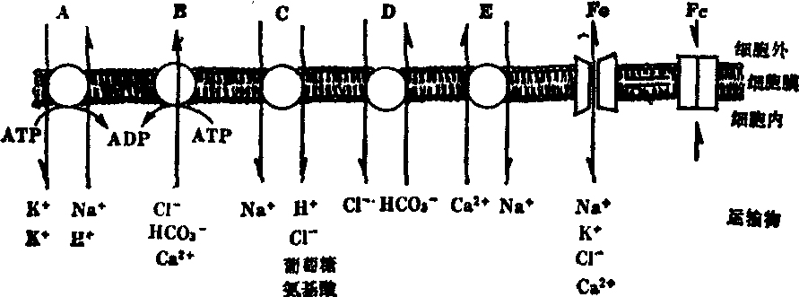 释义 | 细胞膜的通透性 细胞膜的通透性细胞膜的通透性是细胞为了维持正常的生理状态,与其环境之间通过质膜屏障进行物质交换的特征。根据物质的大小和理化性质不同,细胞膜的通透性主要有三种形式(图1):❶物理扩散; 又叫非中介扩散,如水、CO2、O2、N2和一些小的不带电极性分子等,它们直接通透膜类脂双层,从高浓度一边流向低浓度一边。 图1 细胞膜通透性示意图 水的通透 水分子能通过质膜的类脂双层出入细胞,从而调节细胞的体积和胞内渗透强度。当动物细胞置于高渗或低渗溶液中时,引起渗透压的变化。在低渗溶液中,水从胞外向胞内迁移,使细胞膨胀,最终细胞可能被解体;而在高渗溶液中,由于水从胞内向胞外迁移,以致细胞收缩。许多动物细胞,在环境剧变的情况下,能使用其他离子运输系统,调控胞内渗透强度,维持细胞的体积。例如在高渗情况下,细胞膜上的Na+—H+反向运输器和Cl--HCO3-交换器被激活,它们分别把胞内由H2O和CO2在碳酸酐酶作用下产生的H+和HCO3-与胞外的Na+和Cl-交换。这样,使胞内盐浓度和渗透强度增加,引起水的内流,恢复细胞体积。因此,水通透细胞膜的过程,往往伴随着膜上其他一些离子或溶质运输系统的作用。 细胞膜的运输系统主要包括以下类型: A和B分别为二磷酸腺苷酸驱动的双向泵和单向泵;C表示依赖于Na+的共同运输器; D为阴离子交换器; E是离子偶联运输器;F为离子通道,F。与F。分别表示通道的开放与关闭(图2)。概括起来,以上的类型可以归为两大类: 一类是载体运输系统(图2,A—E),另一类是选择性离子通道(图2,F)。两者在动力学上有显著不同(图3),当所有载体蛋白的结合位点被运输物占领时,运输速度达最大值(Vmax),而且,每一种载体蛋白对它的运输物质具有特有的结合常数(KM),所有载体运输速度与运输物浓度间符合米凯利斯-门顿动力学原理。通道运输则属于简单扩散动力学特性。 图2 离子运输类型示意图 图3 载体运输和简单扩散的动力学比较 载体运输系统,又可分为主动运输(图2,A-B)和被动运输(图2,C-E):前者需要消耗能量,能源有的来自三磷酸腺苷酸的水解,如Na+泵和Ca2+泵等;也有的来自光或其他物质,如细菌在摄取糖分子时的基团转位运输,能量来自磷酸烯醇丙酮酸。这类运输是逆着浓度梯度进行的,所以称为主动运输。后者不需要供给外源能量,是顺着离子浓度梯度和电化学梯度所进行的运输,称为被动运输。 Na+泵 Na+泵是一种三磷酸腺苷酶,它同时运输Na+和K+,所以通常称为Na+、K+-三磷酸腺苷酶,该酶含有乌巴因专一性结合位点,又称乌巴因抑制性Na+泵。所有细胞膜都存在Na+泵,它直接或间接地控制许多基本的细胞功能:膜电位,细胞体积,热量的产生,胞内pH和游离Ca2+浓度等。在肾和肠上皮细胞,Na+泵只分布在基底膜上,Na+通道或Na+-偶联运输器则分布在向腔面上。Na+泵的这种不对称性分布,导致了盐、溶质和水的大量迁移。一些非上皮细胞,如成纤维细胞、脂肪细胞和白细胞等,Na+泵与Na+-偶联运输器均匀地分布在整个细胞表面,Na+泵直接调控这些偶联运输器的活性。在神经细胞,Na+泵的分布呈不对称性,尽管它不直接参与神经传导或突触传递,但它产生和维持了静息膜电位。肌肉细胞的Na+泵呈均匀分布,它通过Na+-Ca2+交换器间接地调控胞质中的Ca2+浓度。 Na+泵运输的分子机制包含一系列循环过程:3个Na+在膜内侧与Na+泵结合→Na+泵的磷酸化→Na+泵分子构型改变→3个Na+穿越膜并释放到胞外→2个K+在膜外侧与Na+泵结合→Na+泵的去磷酸化→Na+泵分子构型恢复→2个K+释放到细胞内。 Na+泵活性的调控,归纳为下列几类物质:一类是直接效应物,包括Na+、K+、三磷酸腺苷酶及其类似物、乌巴因和其他内源因子。另一类是间接效应物,如醛固酮、皮质醇、皮质内固醇、9-α-氟-16-甲基脱氢皮质甾醇、甲状腺激素等,它们主要从基因转录,mRNA的翻译和新合成的蛋白质在膜上整合诸方面进行调控; 另一些效应物如孕酮、胰岛素、加压素、胰升糖素、表皮生长因子和儿茶酚胺等,它们主要通过膜受体和第二信使系统进行调控。 Ca+泵 这是另一种重要的离子泵,又称Ca2+-三磷酸腺苷酶,它使细胞质游离Ca2+浓度保持较低水平。在红细胞,位于质膜上的Ca2+泵,把胞质游离Ca2+运输到胞外;而肌肉细胞,在肌质网膜上富集的Ca2+泵,把Ca2+从胞质运输到肌质网内。通常,激素刺激细胞,引起胞质Ca2+浓度变化,可以调控Ca2+泵活性。在红细胞和其他一些细胞,钙调素也能调控Ca2+泵活性,当胞质Ca2+上升时,钙调素与Ca2+结合,引起Ca2+泵变构,加速Ca2+输出,使胞质Ca2+恢复低水平。然而,在一些组织中,由于细胞膜Ca2+泵的最高活力较低,因此对于大量Ca2+的输出,不是以Ca2+泵运输为主要途径,而是由Na+-Ca2+反向运输器担负。 Na+-Ca2+反向运输器 Na+-Ca2+反向运输是Na+顺着浓度梯度输入胞内的同时,Ca2+逆着浓度梯度向胞外运输的过程,所以又称其载体蛋白为Na+-Ca2+偶联运输器。在心肌细胞收缩过程中,胞液Ca2+从0.1μm上升到1.0μm左右,由于Na+-Ca2+反向运输速度比Ca2+泵高30倍,因此使心肌细胞游离Ca2+迅速回复到低水平。Na+-Ca2+反向运输器比质膜Ca2+泵更为有效。Na+-Ca2+反向运输降低胞液Ca2+浓度按以下的反应进行:Ca内2++2Na外2+→Ca外2++2Na内+,这就需要输入2个Na+才能推动一个Ca2+输出。一些药物如乌巴因和异羟基洋地黄毒甙等,对治疗充血性心力衰竭有显著临床效果,它们的作用机制主要是抑制心肌