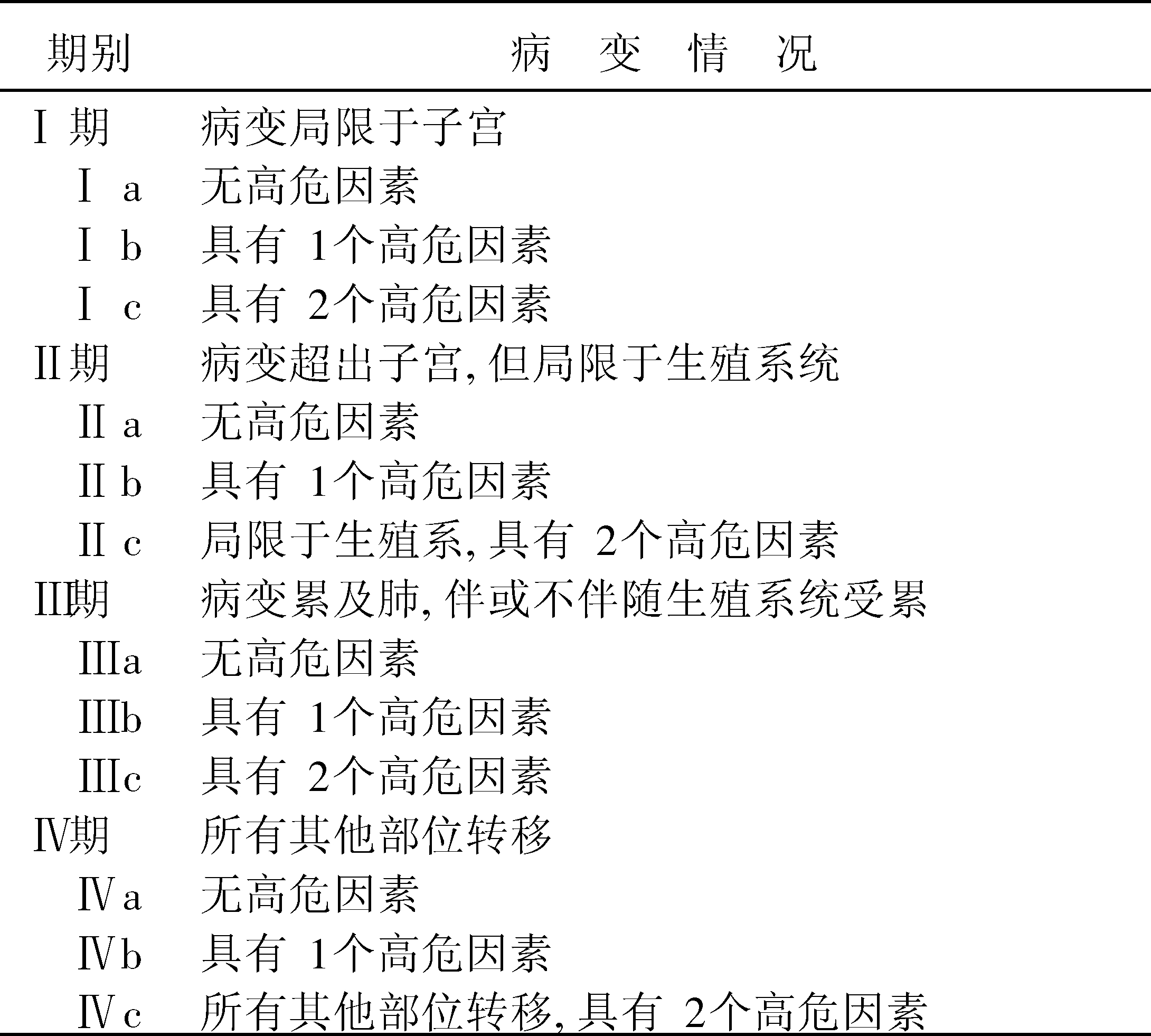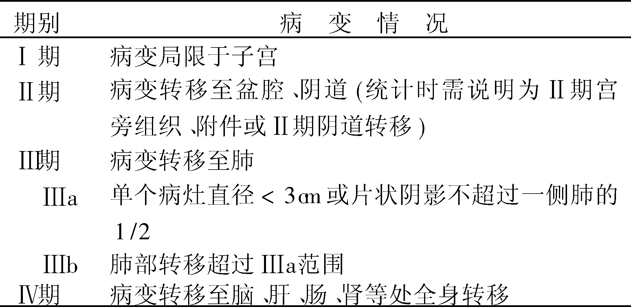 表3 侵蚀性葡萄胎和绒毛膜癌的FIGO分期法
