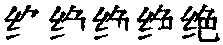 *绝(絶)jué9画 糸部 (1) 断开: ~交|断~|络绎不~。 (2) 穷尽;没有救的;没有出路的: ~路|~症|气~|~处逢生。 (3) 极端的: ~妙|~密|~早|~顶聪明。 (4) 少有的;独一无二的: ~技|~活儿|其诗、书、画堪称三~。 (5) 全然;无论如何: ~对|~不允许|~无此心|~不相干。 (6) 绝句,旧体诗的一种,每首四句,每句五字或七字,有一定的格律要求: 五~|七~。 绝絕jué甲骨文至战国文字的会意字。从丝中有画切断状。小篆以后从纟(糹mì,丝),从刀,从卩(节本字。巴,不是巴蜀的巴)。右旁不是颜色的色字。是切断丝义,引申为断。如:绝望|络绎不绝。又引申为尽,穷尽。如:气绝。组词如:绝境。又引申为极,极端的。如:绝妙|绝密。组词如:绝顶|绝对。又引申为精湛的,少有的。如:绝技。又引申为一定地,无论如何。如:绝不允许|绝不赞成。 绝絶★繁◎常★常