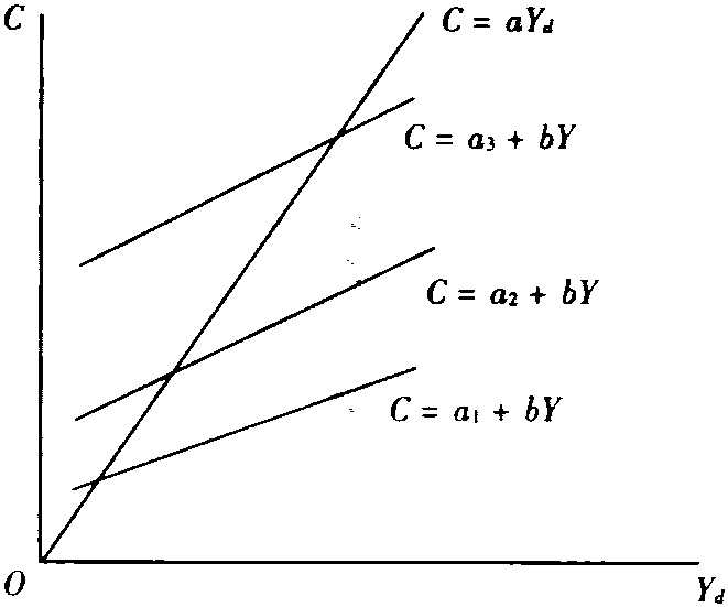 释义 | 绝对收入假定 绝对收入假定Absolute Income Hypothesis(AIH)英国经济学家凯恩斯 (J. M. Keynes) 提出的消费函数理论。在凯恩斯之前,经济学家认为人们的消费支出是利率的函数。凯恩斯在《就业、利息和货币通论》 中认为,消费支出主要决定于人们的现期可支配收入,即实际消费支出是现期可自由支配收入的函数: C=C(Yd) 式中,C是消费者的消费支出,Yd是现期可自由支配收入。因为消费支出与个人的现期绝对收入有关,故凯恩斯的消费函数理论也被称为绝对收入假定。凯恩斯认为,一社会的消费量,主要受以下因素影响: (1) 收入,(2) 其他客观环境,(3)该社会各组成成员的主观需要、心理倾向、心理习惯以及相互之间分配收入的方式。为了分析方便,他把人们的消费动机分为两大类: 主观因素和客观因素。主观因素包括人性的心理特征、社会习俗和社会制度,但主要是人们不愿多消费或愿意储蓄的动机。可用八个词概括储蓄动机 (即影响储蓄动机的八个因素): 谨慎、远虑、计算、改善、独立、企业、自豪、贪婪; 与此对应的消费动机可概括为: 享受、短见、慷慨、失算、炫耀、奢侈。上面论述的是个人的消费行为,凯恩斯认为上述动机也适用于分析公司和政府部门的储蓄和消费动机。凯恩斯认为影响人们消费支出的客观因素在短期内是比较稳定的、改变缓慢的。影响人们的消费支出的客观因素主要有: (1) 工资单位的变化,(2) 收入与净收入之间差额的变化,(3) 财产的货币价值意想不到的变化,(4) 利息率的变化,(5) 财政政策的变化,(6) 个人对未来收入的预期变化。凯恩斯认为,除了第一个因素 (工资单位变化) 以外,其余五个因素都可看作在短期内变化不大或影响轻微。如果取消工资单位 (以货币计算) 的变动,那么这些主观因素和客观因素可用 “消费倾向” 来表示它们对消费的影响。所谓消费倾向是指消费占收入的比重; 边际消费倾向是指消费增量占收入增量的比重;平均消费倾向 (即总消费倾向)是指总消费在总收入中占的比重。从对影响消费的主观和客观因素的分析可以看出,在短期内,消费函数是一个大体稳定的函数。在对有关消费支出行为分析的基础上,可以概括绝对收入假定有以下四个命题: (1) 现期消费是现期可支配收入的一个非常稳定的函数。(2) 边际消费倾向(MPC) 是一个大于零小于1的数,即![]() 图1 C=C0+bYd(C0>0,0其中C0为自发消费,其曲线如图2。 图2 图3 对凯恩斯绝对收入假定的实证研究包括三个方面。首先是以横截面数据为基础的所谓预算研究(Budget Studies)。研究的结果完全符合绝对收入假定的四个命题。但是预算研究在两个方面有严重的不足: (1) 预算研究所划分的各个组别间的家庭消费支出的差异可能是由于可支配收入以外的因素引起的,而这却是凯恩斯的绝对收入消费函数理论没有反映的。(2) 预算研究考虑的是在同一时点上,各个收入组别的收入和他们消费支出之间的关系,但它没有说明随着时间的推移,当所有家庭的收入都增加时,经济中总的消费支出是如何变化的。而绝对收入假定实际所指的是,随着时间的推移,消费支出会随着收入的增加而增加。因此,应该使用时间序列数据来验证消费函数理论。库兹涅茨 (Kuznets) 运用10年左右的时间序列数据对消费和收入进行回归分析,得到他所谓的短期消费函数。该短期消费函数具有一个正值的截距,边际消费倾向是一个大于零而小于1的数,这意味着平均消费倾向是递减的,边际消费倾向小于平均消费倾向。总之,短期消费函数是支持绝对收入假定的 (尤其是前三个命题)。但是当使用不同时期的时间序列资料时,得到的这种短期消费函数的MPC保持相对稳定,而各个时期的消费函数的截距却随着经济水平的发展不断上升。最后,运用50年左右的时间序列数据,得到的消费函数却具有完全不同的特征。该消费函数曲线的截距为零,平均消费倾向和边际消费倾向完全相同,即在长期中,消费和收入是按比例变化的,如图3所示。这些结论与绝对收入假定的命题 (1)、(3) 和 (4) 是矛盾的,被称为库兹涅茨悖论 (Kuznets’ Paradox)。在20世纪40年代末,函数 “向上” 运动的含义是不清楚的。这样,一个令人信服的消费函数理论必须能够至少解释以下问题: (1) 在横截面数据中,为什么MPC☚ 收入假定 相对收入假定 ☛ |