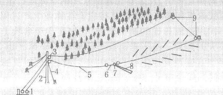 释义 | 绞盘机集材high lead yarding用绞盘机钢索将散木沿伐区地面拖集至伐区楞场的作业。被集的木材通常是原条或伐倒木。绞盘机集材可用于地势低洼,也可用于坡度较大的山地和半山地的伐区,既可用于顺坡集材,也可用于逆坡集材。夏季集材的效率略低于冬季。适用于皆伐方式。为便于拖集,通常在伐区楞场设置直立集材杆,钢索绕过集材杆顶端滑轮伸向伐区。 绞盘机集材示意图 见绞盘机。 绞盘机集材donkey loggin g又称钢索集材。以固定在适当位置的绞盘机为动力,牵引钢索拖曳木材,从伐木地点汇集到装车场或山上楞场的作业。它既可以应用在平坦和丘陵林区,也可以应用在坡度较大的山地林区,特别在低湿和沼泽的林地内,夏季采用绞盘机集材比较适宜。绞盘机全拖式集材要求地形地表起伏变化不大,且无岩石裸露的林地。绞盘机半悬式集材,由于所集木材的前端吊起拖曳,遇到正面阻力可能性较少,所以对地形地表变化情况要求不严。 |
