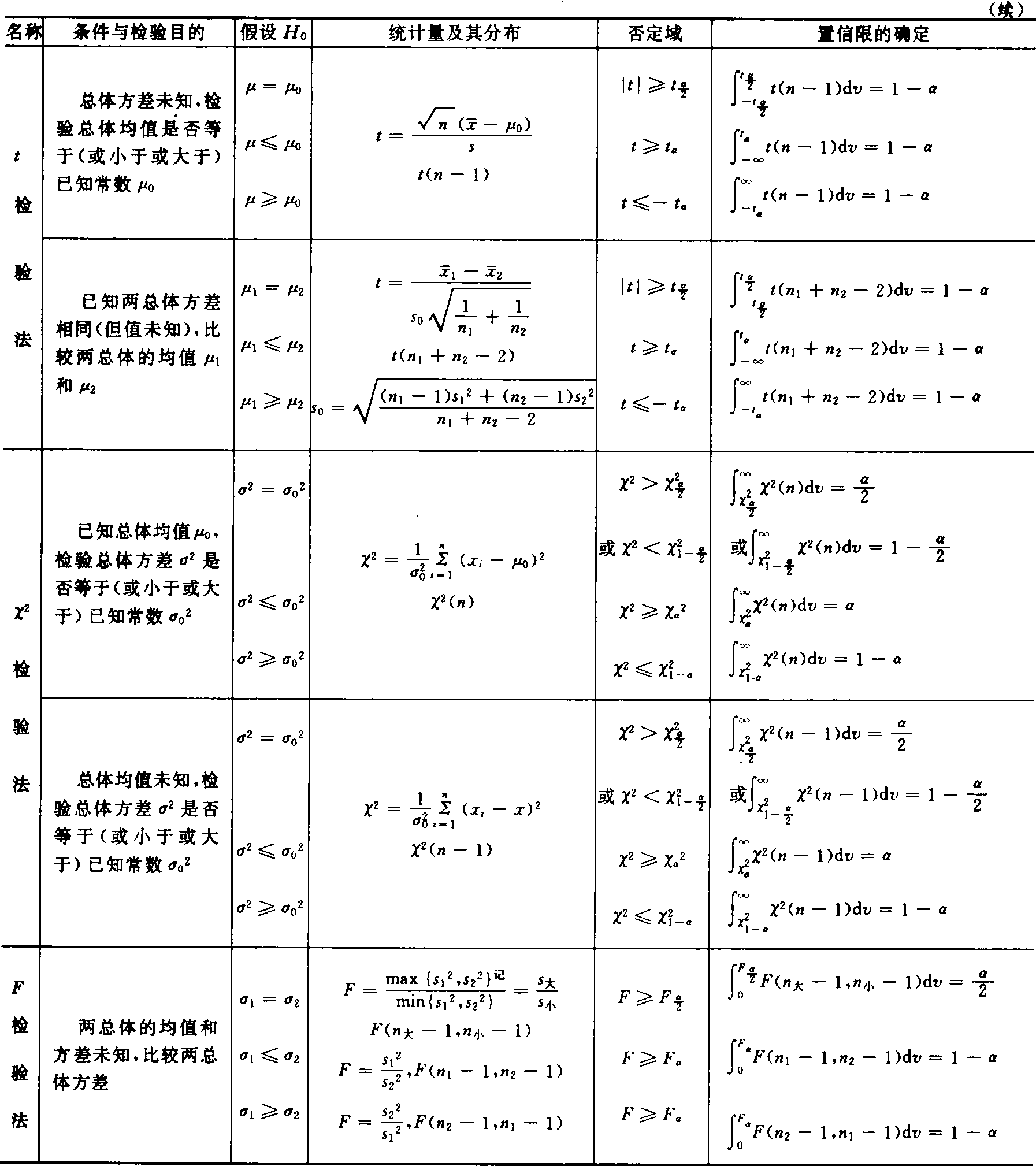 释义 | 统计假设检验statistical hypothesis test对所研究的未知或部分未知总体提出一些假设,由样本的实际结果经过一定计算作出概率意义上应当接受何种假设的检验。 正态总体参数的统计检验表 统计假设检验 统计假设检验简称“统计检验”、“假设检验”。根据样本信息来判断总体是否具有指定特征的方法。如已知相互独立的两个样本分别来自两个正态总体,判断这两个总体的期望值或方差是否相同。通常是根据问题的性质建立假设,然后,通过抽样资料来判断这种假设是否可以接受。例如,根据经验,假设今年粮食单产为每亩1 500斤,而后从总体中抽取样本作出接受或拒绝这种假设的检验。是接受或是拒绝假设,取决于样本指标与所假设的总体指标的差异是否显著。统计检验分为参数假设检验和非参数假设检验。前者如某一总体指标是否等于某一数值,后者如某一随机变量是否服从正态分布。统计检验可能有两种错误。当原假设实际上是对的,仅根据样本信息加以拒绝,就犯了“弃真”错误; 当原假设实际上不对而接受,就犯了“存伪错误。在样本容量确定后,犯这两类错误的概率不可能同时减少,要它们同时减少,只有增加样本容量。 ☚ 非参数方法 原假设与备择假设 ☛ |
