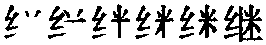 【提示】米,中间是竖,不是竖钩,位于半包围结构中,末笔的捺改点。 *继(繼)jì10画 糸部 后者接续前者,不间断: ~承|~续|~往开来|相~完成|前仆后~。 继繼jì西周晚期以来的形声字。本上下都从𢆶(丝),中隔一横画,表示丝连接形。义为连续,接着。如:继任|前仆后继|继往开来|继续|继承。《说文》引战国文字又改为㡭中和下各增一竖折横表义(《说文》又认为反过来就是断的本字,不确。古文字反正方向的都是同一个字)。 小篆再增纟 ( 糹(mì),丝)表义。唐代僧怀素草书已有“继”的右边写法。宋代初期《广韵》已有楷化作“继”的写法,现以为规范简化字。 继繼★繁◎常★常