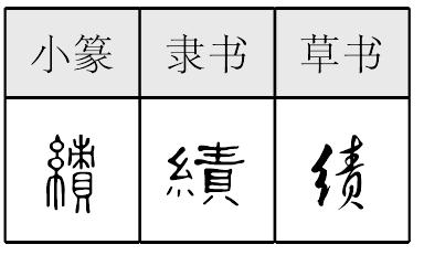 【提示】在异体字整理前,表“成果、功业” 义时,“勣”是“绩 (績)” 的异体; 表其他义时,“绩 (績)” 没有异体。 *绩1(績)jì11画 糸部 把麻续起来搓捻成线或绳: ~麻|纺~。