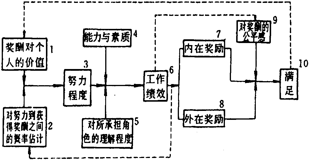 释义 | 综合型激励理论 综合型激励理论内容型激励理论强调满足人们的需要来研究激励,过程型激励理论强调从动机的产生到行动的复杂的心理过程来研究激励,综合型激励理论则是以上两种理论的综合和发展,其主要代表是波特和劳勒的综合激励模式。 图25 波特与劳勒激励模式示意图 4.满足。满足是一种认知和感觉。 以上四个变量是相互影响的,每一次的工作绩效会以反馈形式影响到个人对成功概率的估计(6至2的虚线所示),每次行动最终的满足感将反馈到个人对奖酬价值的主观估计(10至1的虚线)。 关于绩效与满足的关系,西方组织行为学家一直存在着争论。内容型激励理论强调满足需要才能产生绩效;过程型激励理论(如佛隆的期望理论)提出了“价效”观念,但没有明确满足与绩效的关系;波特和劳勒的综合型激励理论模式真正说明了两者的相互关系,明确指出努力、绩效、奖酬都是独立的变量,满足取决于绩效。这对传统的满足导致绩效的研究是一个进步。 ☚ 公平理论 规划的意义 ☛ |