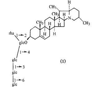 释义 | 假百合 【名称出处】:《中药大辞典》 【概况】: 异名 太百米(《陕西中药名录》)。 基源 为百合科假百合属植物假百合的鳞茎。假百合属全世界约6种,分布于东亚,中国有3种,假百合1种入药。本属有人将其归并于百合属(Lilium L.)不同处为鳞茎狭窄,无鳞片,但有黑色的膜被,有基生叶。至于花的构造则和百合属相同。 原植物 假百合Notholirion bulbuliferum(Linge-Lsh)Stearn[Liliumhyacinthinum Wilson;Notholirion hyacinthinum(Wilson)Stapf;Paradisea bulbuliferumLingelsh.] 形态 多年生草本。小鳞茎多数,卵形,直径3~5mm,淡褐色。茎高60~150cm。基生叶5~10枚。 带形,长10~25cm,宽1.5~2cm;茎生叶条状披针形,长10~18cm,宽1~2cm。总状花序具10~24朵花;苞片叶状条形,长2~7.5cm,宽3~4mm;花梗稍弯曲,长5~7mm;花淡紫色或蓝紫色;花被片倒卵状长圆形,长1.6~2cm,宽1.5cm,有钝棱。 花期7月,果期8月。(图见《中国高等植物图鉴》.第5册.456页.图7742) 生境与分布 生于海拔3000~4500m高山草丛或灌木丛中。 分布于中国甘肃、陕西、云南、西藏。尼泊尔、锡金、不丹和印度也有。 。【生药】: 采集 8~9月采挖,除去地上部分及须根,晒干。 【化学】: 从鳞茎的甲醇提取物中分到太白米甙甲,其结构为:龙葵胺-3-O-α-L鼠李吡喃糖(1→2)-[β-D-葡萄吡喃糖-(1→4)]βD-葡萄吡喃糖甙。 另含游离的龙葵胺(即茄次碱,Solanidine)[1,2]。还含β-卡茄碱(β-Chaconine)、太白米甙(Hyacinthoside)[3]和新太白米甙(Neohyacinthoside)(1)[4]。 参考文献 [1] 江苏省植物研究所等.新华本草纲要.第2册.上海科学技术出版社,1991∶539 [2] 云南植物研究 1982;4(4)∶419 [3] 药学学报 1986;21(3)∶177 [4] 药学学报 1988;23(1)∶61(CA 1988;109∶51701f)。【药性】: 性味 ❶ 《陕西中草药》:“辛、微甘、苦,温。 ” 功效 宽胸利气,健胃,止呕,镇痛,止咳。 主治 治胃痛腹胀,胸闷,呕吐反胃,风寒咳嗽,小儿惊风。 用法用量 内服:煎汤,1 5~6g;研末1.5~2.5g。 。【临床应用】:方选和验方 《陕西中草药》:“治呕吐反胃:假百合4.5g,朱砂七、八爪龙、太羌活各6g,祖师麻3g,陈皮9g,水煎服。” 单方应用 ❶ 《陕西中草药》:“治胃痛腹胀:假百合2~2.5g,凉开水或凉生姜水冲服。” |