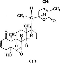释义 | 假酸浆 【概况】: 异名 水晶凉粉(《贵州中草药名录》),鞭打绣球(《昆明民间常用草药》),冰粉(《云南中草药选》),大千生、田珠(《云南中草药》),苦莪(《广西药用植物名录》)。 基源 为茄科假酸浆属植物假酸浆的全草。 原植物 假酸浆Nicandra physaloides(L.)Gaertn.。假酸浆属全世界1种,中国有引栽。 历史 原产南美洲。 云南民间草药。 余项参见“假酸浆子”条。 。【化学】:全草含假酸浆素(假酸浆甙苦素,Nicandrin)0.65%。 叶含假酸浆烯酮(Nicandrenone)、魏察假酸浆素(Withanicandrin),叶还含谷甾醇,菜油甾醇、异岩藻甾醇、胆甾醇、豆甾醇、24-亚甲基胆甾醇和芸苔甾醇[2]。从叶的水提液中分到17个化合物Nic1~17,其中Nic1,2,3,7,10,11,12,17的结构已经确定[3~7],Nic1即假酸浆烯酮。根含托品酮(Tropinone)、古豆碱(Hygrine)[1]。 从种子得曼陀罗内酯2(Daturalactone2)[8]。 从脱脂种子分得新化物假酸浆素B(Nicandrin B,C28H38O6)(1),为一新的C28-甾体内酯[9]。 附 假酸浆变种白花假酸浆(N.physaloides var.albiflora)含白假酸浆素A,B(Nicalbin A,B)[10,11]。 参考文献 [1] 江苏新医学院等.中药大辞典.上海人民出版社,1977∶4522 [2] Phytochemistry 1984;23(4);743 [3] CA 1976;84∶122127b [4] CA 1976;84∶122128c [5] CA 1973;78∶43831z [6] CA 1974;81∶4122m [7] CA 1977;86∶43893m [8] CA 1984;101∶87488r [9] Phytochemistry 1984∶853 [10] CA 1980;93∶145646v [11] CA 1980;93∶168481b 。【药性】:性味 《全国中草药汇编》:“甘、酸、微苦,平。有小毒。” 功效 镇静,祛痰,清热解毒。 主治 ❶ 《全国中草药汇编》:“狂犬病,精神病,癫痫,风湿关节炎,鼻渊,感冒,泌尿道感染,疮疖。” 用法用量 内服:煎汤,30~60g。 。【临床应用】:单方应用 ❶ 南京药学院《中草药学》:“治精神病,癫痫:假酸浆全草30~60g,水煎服。内服宜慎。” ” |