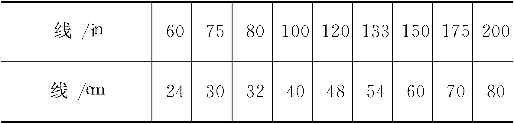单位长度内所含有的网点个数。印刷行业常用的网点线数如下表: