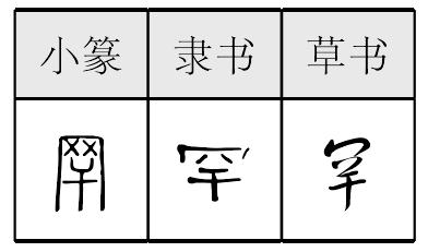 hǎn形声,小篆从网,干声,隶定为“罕”。本义为捕鸟的长柄网,假借为稀少。罕 (hǎn)網也。从网,干聲。 |