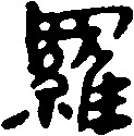 ❸ 门可罗雀|门堪罗雀|珠翠罗绮|自投罗网 罗luó繁体为“羅”,会意字,甲骨文上为网,下为鸟,籀文、小篆加“糸”,意思是丝织的捕鸟的网。谐“络”之音。作声符生成的字有: luó 逻(逻辑) 萝(萝卜) 锣(锣鼓) 箩(箩筐) 椤(桫椤,树名) 猡(猪猡) 罗羅luó(8画)