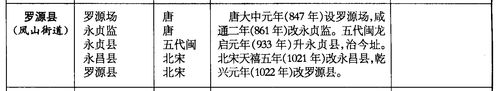 罗源县(凤山街道)罗源场永贞监永贞县永昌县罗源县唐唐五代闽北宋北宋唐大中元年(847年)设罗源场,咸通二年(861年)改永贞监。五代闽龙启元年(933年)升永贞县,治今址。北宋天禧五年(1021年)改永昌县,乾兴元年(1022年)改罗源县。