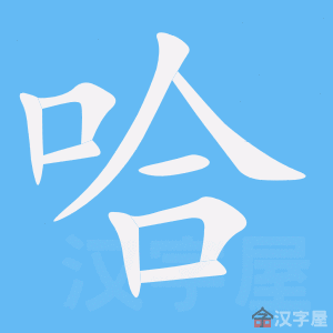 hà 哈士蟆hàshimá 名 满语音译。蛙的一种,背部土灰色,有黄色和红色斑点,生活在阴暗潮湿的山坡树丛中。主要产于我国东北及内蒙古等地。雌蛙干燥体和输卵管的干制品可以做药材。(也说中国林蛙。)另见hā;hǎ。 哈 1 hǎ 名姓。 哈 1 hā ❶叹表示得意或惊喜。哈,试验成功啦!|哈哈,这下可好了! →❷拟声模拟大笑的声音(多叠用)。哈哈哈,传来一阵爽朗的笑声|哈哈大笑 哈 2 hā 动(人)张开嘴呼气。哈气 哈 2 hǎ 哈达hǎdá 名 藏语音译。藏族和部分蒙古族人表示敬意或祝贺时献给神佛或对方的长丝巾或纱巾,多为白色。另见hā;hà。 哈 3 hā 〈口〉动弯(腰)。哈着腰跑过去|点头哈腰另见hǎ;hà。