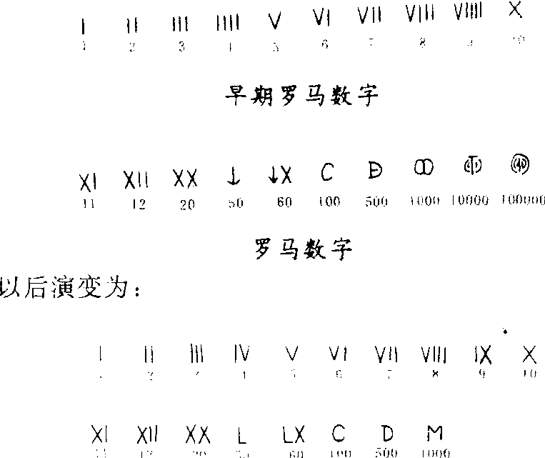 释义 | 罗马数字luómǎshùzì〈名〉古代罗马人使用的计数的符号,从一到十分别是:Ⅰ、Ⅱ、Ⅲ、Ⅳ、Ⅴ、Ⅵ、Ⅶ、Ⅷ、Ⅸ、Ⅹ。 罗马数字luó mǎ shù zì古代罗马人记数用的符号。1610年,在利玛窦的《理法器撮要》一书中,已印有罗马数字的手写体(见该书“平晷加节气线法”一节),但当时还没有关于罗马数字的名称。“罗马数字”这一名称出现在后,如1890年《日本国志》卷三十三:“蝦夷之地今尚沿用其五字以外或亦有变换点画如罗马数字,或画作○口,或作鸟兽草木形之类,然俱不可考。”1902年吴汝纶《东游丛录·函札笔谈》:“小学不过教授罗马数字及横文二十六字。”1931年《英汉对照百科名汇》:“Roman numerals,罗马数字。”◇罗马数目字、罗马古码、大码(相对于“小码”而言,“小码”即阿拉伯数字)。 罗马数字 罗马数字Luoma shuzi直到现在,在一些旧式钟表或其他特殊场合还可以看到罗马数字。与印度-阿拉伯数码完全不同, 罗马数字中完全没有位值的概念,每一个数字符号的含义是完全固定的,一般的记数基本上是由这些符号的累积按加法原则实现的, 公元前146年,罗马人占领了马其顿人统治下的希腊,公元前1世纪又相继占领了马其顿人统治下的巴比伦和埃及,公元前30年,罗马帝国建立,以后地中海沿岸逐渐采用了罗马数字, 并扩展到欧洲绝大部分地区, 直到公元12世纪以后才逐渐被印度-阿拉伯数码所淘汰。 罗马数字在本质上是十进制的, 但是, 它不仅为10的每一幂次规定了一个符号,而且对5、50、500也都规定了相应的符号,对于更大的数就不清楚了。早期罗马数字计数时完全是利用加法原则由符号的累积实现的,后来为了简便,利用10的各个幂次及其5倍,根据减法原则,、Ⅴ、ⅩⅩⅩⅩ、LⅩⅩⅩⅩ、CCCC、DCCCC分别被写成Ⅳ、Ⅸ、ⅩL、ⅩC、CD、CM。 用罗马数字计算加减法,只需注意到 ![]() 由于完全没有位值的概念,乘除法运算十分繁难,因而在中世纪的欧洲流行着这样的打油诗: 乘法原可恼, 除法亦不良。 黄金律, 太讨厌, 练习真使我发狂。 其中“黄金律”即四项比例算法。在现代也曾有学者证明, 可以用罗马数字设计出一套相当简便的乘除法运算程序, 其简便程度不亚于使用十进位值制的印度一阿拉伯数码, 但这恐怕也只是现代人的发明罢了。 ☚ 印度—阿拉伯数码 大数表示法 ☛ 罗马数字Roman numerals 罗马数字Roman numerals |