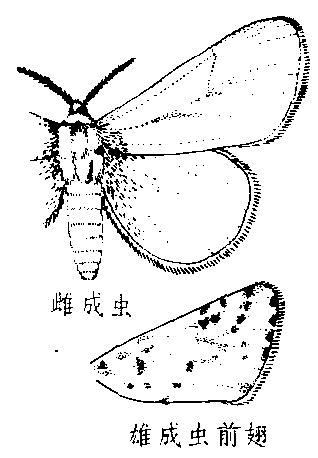 生活习性 在美国年生1~3代,以蛹在树干老皮下和建筑物缝隙内越冬。在欧洲和亚洲一年有两个完整世代,个别年份出现不完整的第三代。春季气温上升到日均温15℃以上时,越冬代开始羽化,秋季气温下降到日均温15℃时蛹进入滞育。因此,15℃是美国白蛾种群活动的临界点。发生一代地区需要有15℃以上气温90天、两代地区则需120天。成虫具一定的飞翔能力和趋光性,可飞行或借风力自然传播,也可飞进火车、汽车车厢内被带往他处,主要途径是各虫态随植物性货物、包装和填充物、交通运输工具等远距离传播。幼虫有较强耐饥力,1~2龄可耐饥3~5天,3~4龄可耐饥5~8天,5~7龄可耐饥11~14天,因而有利于远距离传播。有100多种天敌,起主要作用的是鸟类、寄生蜂、寄生蝇及病毒。北美天敌种类和数量多,抑制作用明显。传入欧洲和亚洲后的最初几年,由于天敌未被带入,本地天敌对新寄主需有一个适应过程,从而形成猖獗为害。许多国家都把美国白蛾列为植物检疫对象,采取严格检疫措施,以防传入。一旦传入,则进行封锁控制扩散。 防治方法 幼虫3~4龄前,集中在网幕内取食为害,抗药力低,易消灭,可剪除幼虫网幕,集中烧毁或喷药。末龄幼虫化蛹前,可在树的主干距地面1米处捆草,诱集幼虫在草内化蛹再集中消灭。各国在生产上推广使用的化学农药有敌百虫、敌敌畏、甲萘威、杀螟硫磷、伏杀硫磷、菊酯类等。苏联等国在生产上应用苏芸金杆菌,核型多角体和颗粒体病毒制剂较广。在微生物制剂中加入微量敌百虫或甲萘威混合使用,可起增效作用,美国白蛾核型多角体和颗粒体病毒具有较强专化性,对家蚕、柞蚕无致病性,可在养蚕区应用。 美国白蛾fall webwormHyphantria cunea Drury,昆虫纲,鳞翅目,灯蛾科。中国对外植物检疫对象。分布于美洲、欧洲和亚洲;中国辽宁、陕西已有发现。寄主有樱桃等100多种。雄成虫纯白色,翅展34~42 mm,前翅有4排斑点;雌成虫翅展42~48 mm,前翅斑点退化。成熟幼虫体长30~35 mm,体背深黑或近于黑色至浅黄色,体被羽状刚毛。以蛹在树皮下和地面落叶内越冬。在原产地北美洲每年发生1~4代,中国丹东每年发生2代。卵成块产于叶背。幼虫吐丝结幕于树冠,群居其中,逐渐将树叶吃光,影响树木生长。宜加强检疫措施。一经发现,及时剪去卵块,毁灭虫幕;低龄幼虫可喷药防治。 美国白蛾 |