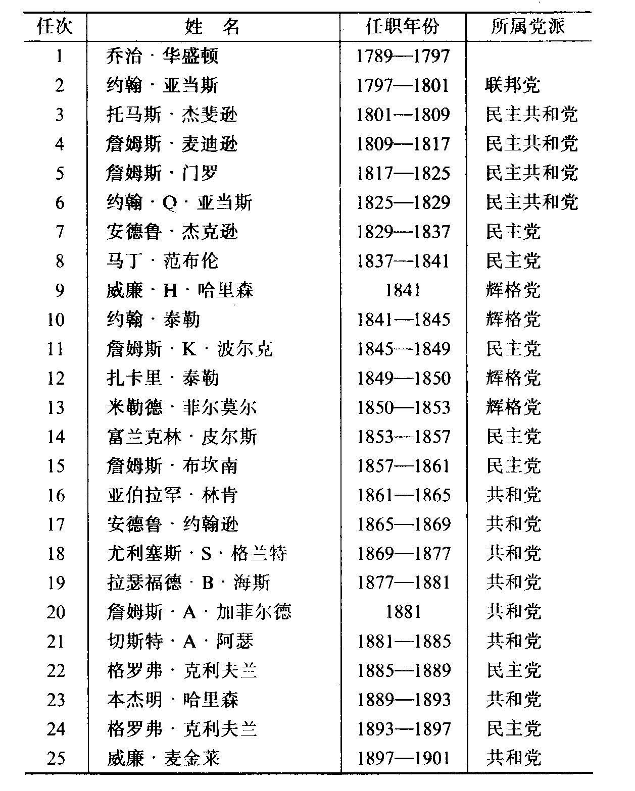 美国历任总统