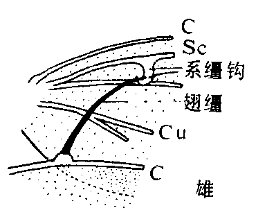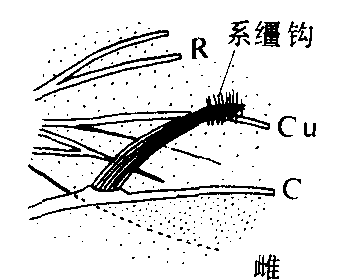 释义 | 翅连锁器wing-coupling apparatus将昆虫前后翅连锁成一体,以增进飞行效力的各种特殊构造。主要有翅轭、翅缰和系缰钩三种(见图)。