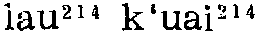 老㧟lǎokuǎi老婆,老伴儿:女胡子们成天聚在方家大院里,并不出来祸害人。我和我~在屯子里找宿住了一夜,也没人盘问我们。(思妃《天叹》)∣“我说那牛老二可真够下三滥的啦!”叼烟袋的那个~把烟嘴儿挪到唇边,摇唇鼓舌儿地挖苦着,“一个让日本人作践够了的破烂货,也肯要!”(张钧《伪都烟云》) 老㧟二1652①名配偶互称;妻子的戏称。⑴东北官话。黑龙江齐齐哈尔〖 〗、黑河〖 〗。我们家~早退休了。⑵北京官话。北京〖 〗。②名老练的人。北京官话。北京〖lau214 kߵuai214〗。干这行儿他可是个~。   老㧟lǎo kuǎi❶老练的人。如:干这行儿他可是个~。 ❷对妻子的谑称。 |